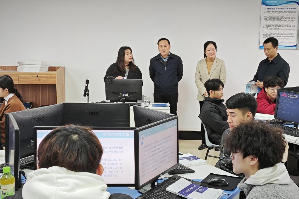 党委宣传部 侯蕾 报道 新学期开课第一天,师生们以饱满的精神状态投入到新的工作学习中。校长王兴辉、党委副书记龙雪津、副校长翁洁、刘绍英、辛立章,广西信息职业技术学院副院长黄河、李国助、邓明学分组深入教学一线听课,充分了解师生工作学习状态,与师生们共同开启新学期。
