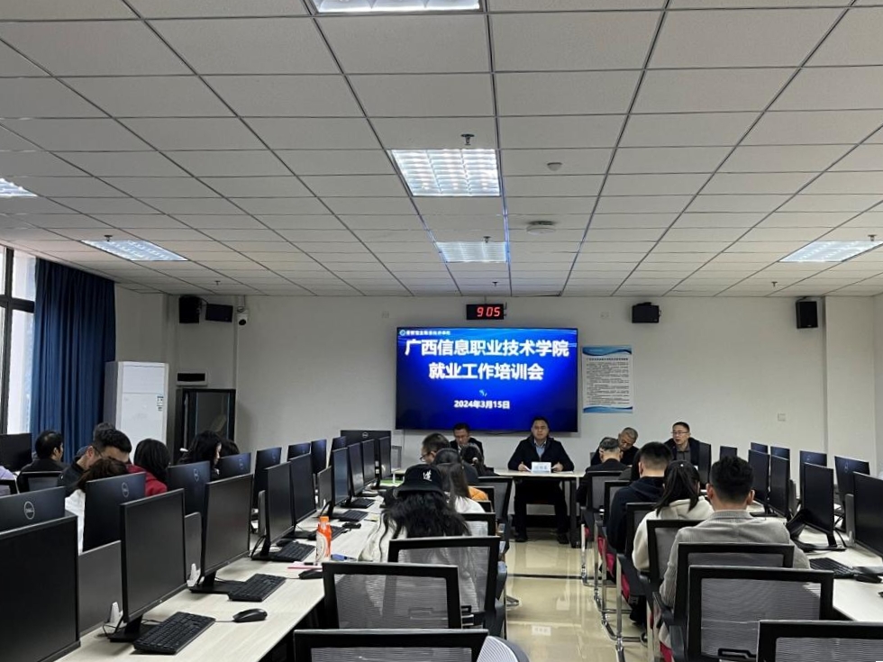 招生与就业处 报道 为进一步推进我校毕业生就业工作,3月15日,我校在1号实训楼403教室组织开展了就业工作业务培训,学校副校长刘绍英,广西信息职业技术学院副院长黄河、邓明学,校长助理陈广杰,招生与就业处、各二学院负责人,就业干事、辅导员参加了会议,会议由校长助理陈广杰主持。