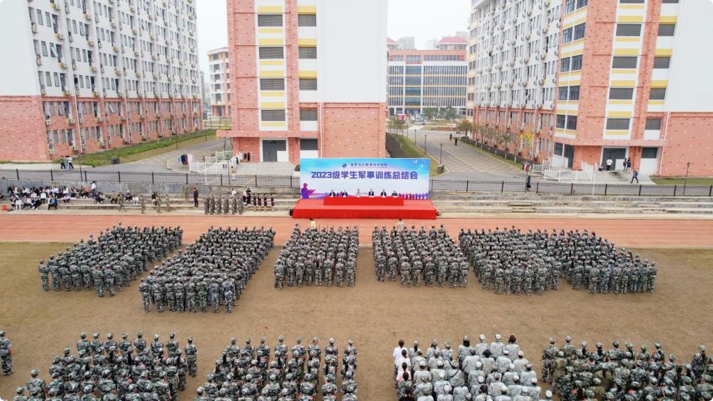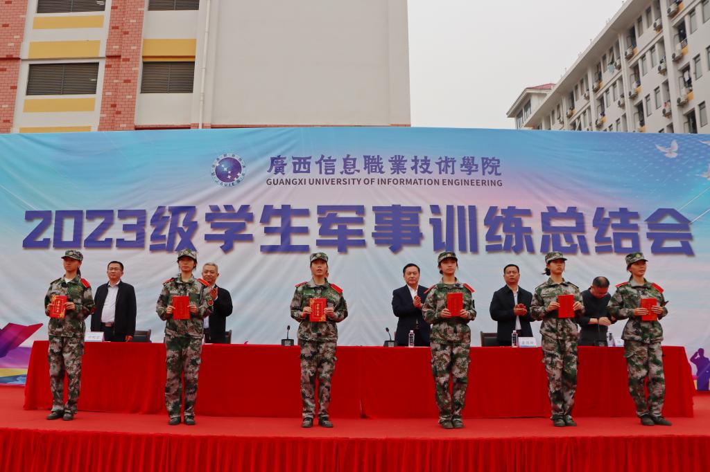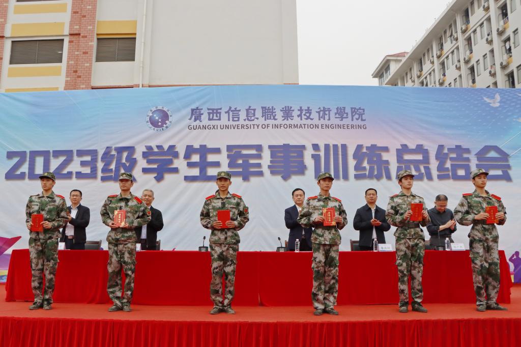 3月18日上午,广西信息职业技术学院举行了2023级学生军事训练总结会。校长王兴辉,广西信息职业技术学院副院长黄河、李国助、邓明学,校长助理陈广杰,党委办公室、党委宣传部、党委学生工作部、后勤与保卫处、教育技术中心、各二级学院相关人员,2023级全体辅导员和全体学生参加了大会。大会由校长助理陈广杰主持。
