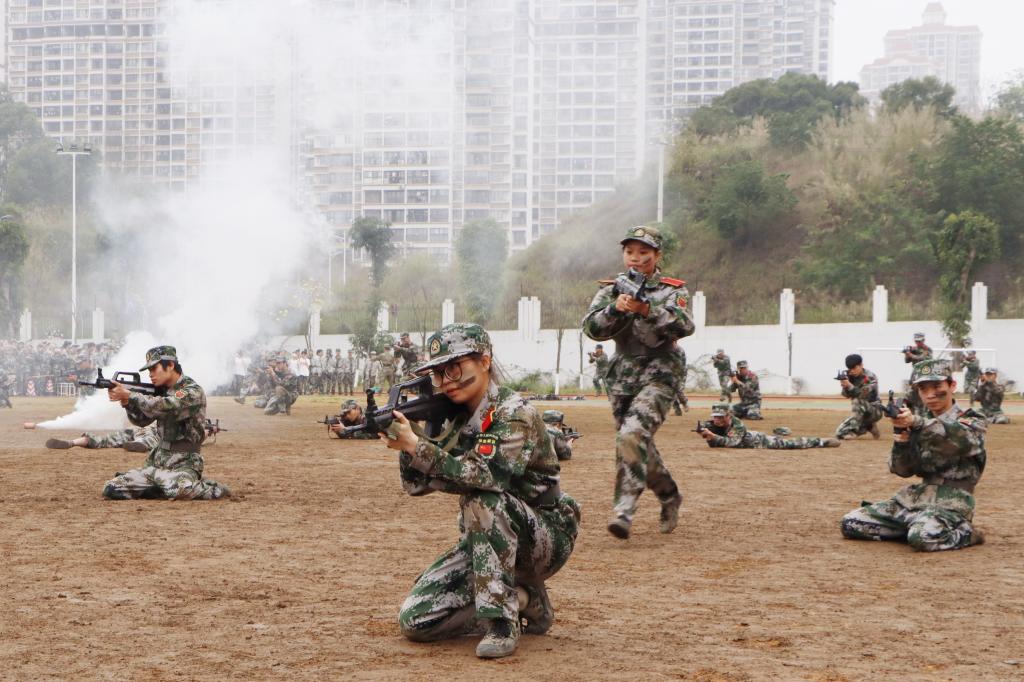 王兴辉校长在讲话中表示,两周的军训时光,同学们经风雨、磨意志,以昂扬的斗志和饱满的精神状态投入其中,磨砺了意志与品格、收获了独立与坚强、享受了快乐与成长。他对同学们提出了四点希望。一是发扬军队优良传统,保持军训优良作风。要在今后学习生活中,继承和发扬人民军队的优良传统,秉持严谨的学习作风,以高标准、严要求、快节奏的状态投入到专业知识学习之中。要厚植爱国主义情怀,传承民族精神基因,将青春礼赞融入到党和国家的伟大事业建设之中。二是保持昂扬精神面貌,培养良好生活习惯。要继续发扬顽强拼搏、坚韧不拔的奋斗精神,保持吃苦耐劳、积极向上的生活作风,牢记强国有我、兴校有我的铮铮誓言,为国家富强、民族复兴、人民幸福、学校发展贡献时代力量。三是认真回味军训经历,迅速投入学习生活。要铭记军训心路历程,认真总结军训收获,珍惜当前的美好时光,进一步增强时间管理,自觉努力提高专业知识水平,积极从思想上、心态上、行动上做好调整,全面适应新学期的生活节奏,快速投入到紧张的学习中。四是提高团队协作意识,强化集体荣誉观念。要在学习和生活中,互相包容、团结协作、共同进步,积极主动参加兴趣小组、群团组织和知识技能专业竞赛队伍,不断培养提高团队协作能力和组织凝聚力,努力争取优异的成绩,与广信职院一起不断成长。