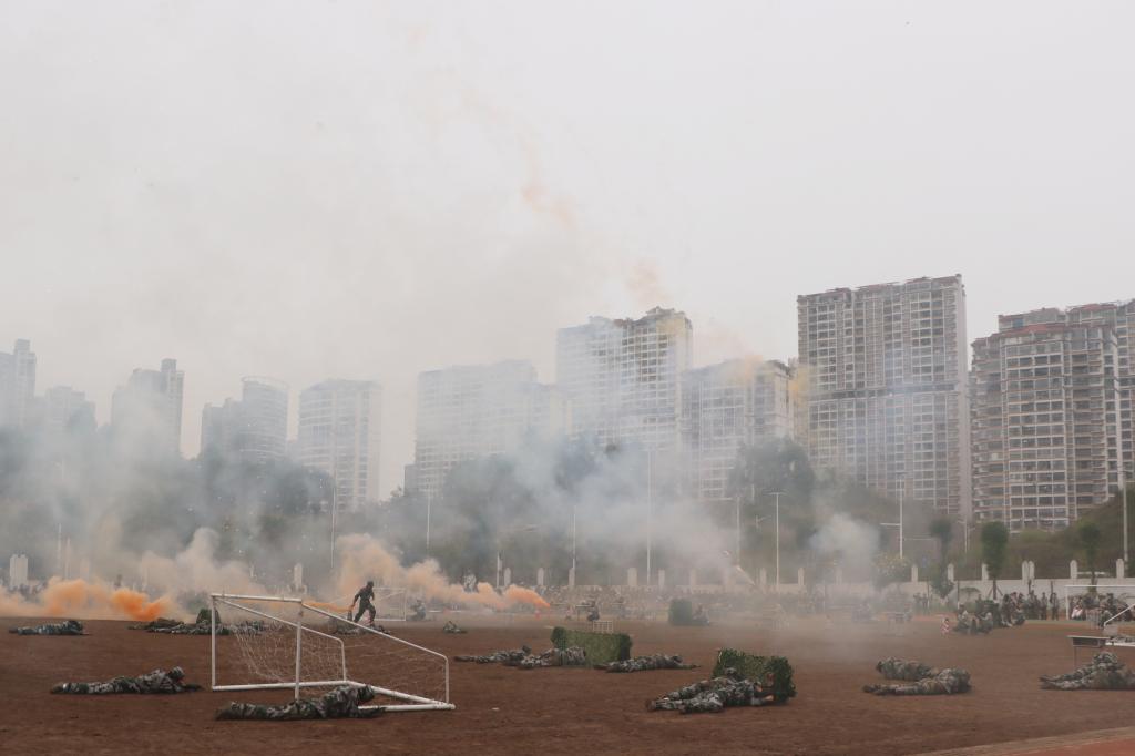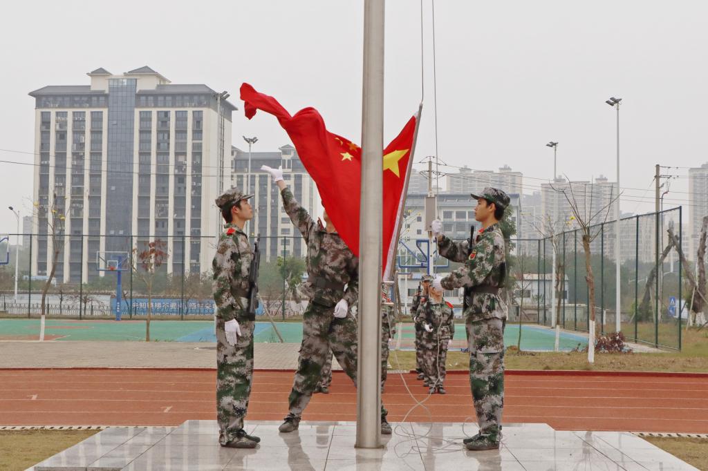 上午9时,伴随着《中华人民共和国国歌》的奏响,全场齐声高唱国歌,国旗缓缓升起,军训总结大会正式拉开帷幕。