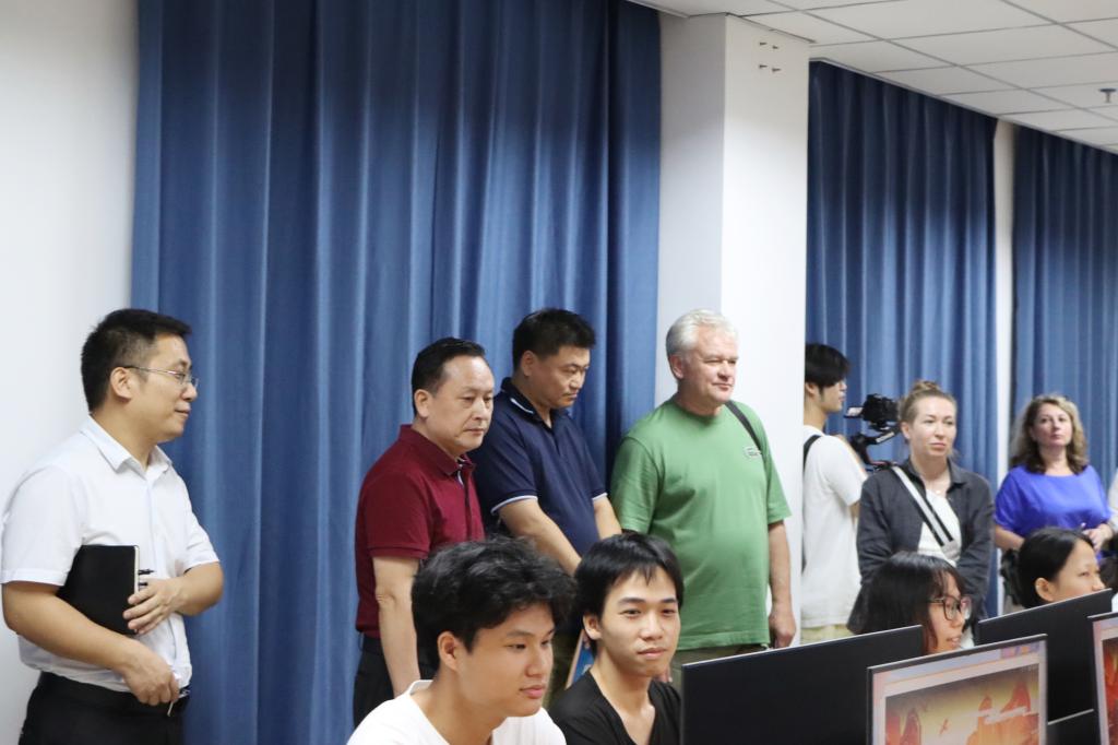 座谈会后,俄方一行旁听了学校数字艺术学院的专业课程,参观了师生的平面、动画设计作品和壮族非物质文化遗产实物设计作品,俄方对作品创作的专业性和艺术性非常赞赏,尤其对师生们在中华优秀传统文化的传承和创新方面所做的努力表示赞扬。