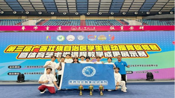 公共教学部 陈采铃 潘长嫔 报道 6日14日至16日,第三届广西学生运动操舞锦标赛暨体育艺术类课程教学成果展示赛在广西师范大学(雁山校区)综合体育馆举行,来自广西12个地市的近1600余名学生参加比赛,我校学子喜获高职高专组街舞齐舞、街舞啦啦操集体项目冠军以及霹雳舞个人项目总冠军。