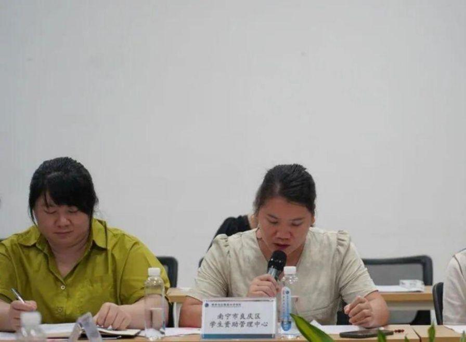 广西电力职业技术学院、南宁学院、南宁市学生资助管理中心、邕宁区学生资助服务中心、南宁市邕宁高级中学、南宁市良庆区大塘镇中心学校等12个单位学生资助工作负责人及工作人员参加会议。参会单位从实际出发,交流分享学生资助工作情况和党建引领学生资助工作的特色做法和取得成效,助力学生资助工作高质高效。