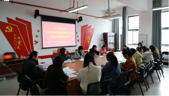 党委组织部 余淑雯 姚小翠 报道 1月4日,党委组织部组织开展广西开放大学2023年基层党组织党建工作检查暨党务干部业务培训会。各支部委员在远教大厦1011党建活动室参加业务培训,并作为检查组成员参与了检查工作。