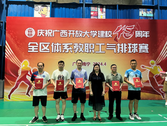 校工会委员会 黎桃桃报道 为了庆祝广西开放大学建校45周年,丰富全区开放大学体系教职工文化生活,增强办学体系凝聚力,4月28日-29日,我校在南宁举行庆祝广西开放大学建校45周年全区开放大学体系教职工气排球赛。学校领导王兴辉、黄美娟、黄鹄、翁洁、李敏智、刘绍英、辛立章出席活动。副校长、工会主席李敏智主持开幕式。