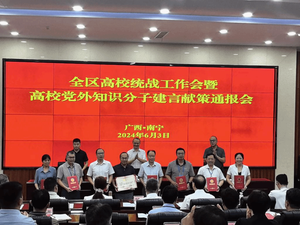 党委统战部 黄杰瑶 报道 近日,自治区党委统战部、自治区党委教育工委发文表彰2023年度开展建言献策工作成效显著、成果突出的集体和个人。我校荣获2023年度全区高校党外知识分子建言献策先进集体称号,民盟广西开放大学支部主委蒙俊荣获2023年度全区高校党外知识分子建言献策先进个人称号
