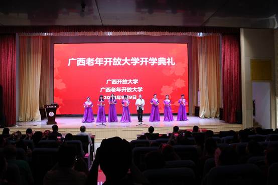 开学典礼在诗朗诵《教师礼赞》中拉开序幕。广西开放大学副校长黄鹄代表学校向各位新老学员表示热烈欢迎。他表示,为了提供更优质的学习环境,学校在暑期投入近300万元对各教室进行了全面升级改造,确保学员们在新学期能享受更舒适的学习体验。他希望老年学员们能够跨越时代鸿沟,乐享晚年生活,通过不断学习保持思想不老、知识不老、精神不老;传承优秀文化,守护民族精神,讲好中华优秀传统文化故事,做广西创建铸牢中华民族共同体意识示范区的推动者;发挥银龄智慧,续写时代风采,做新征程新伟业的参与者。