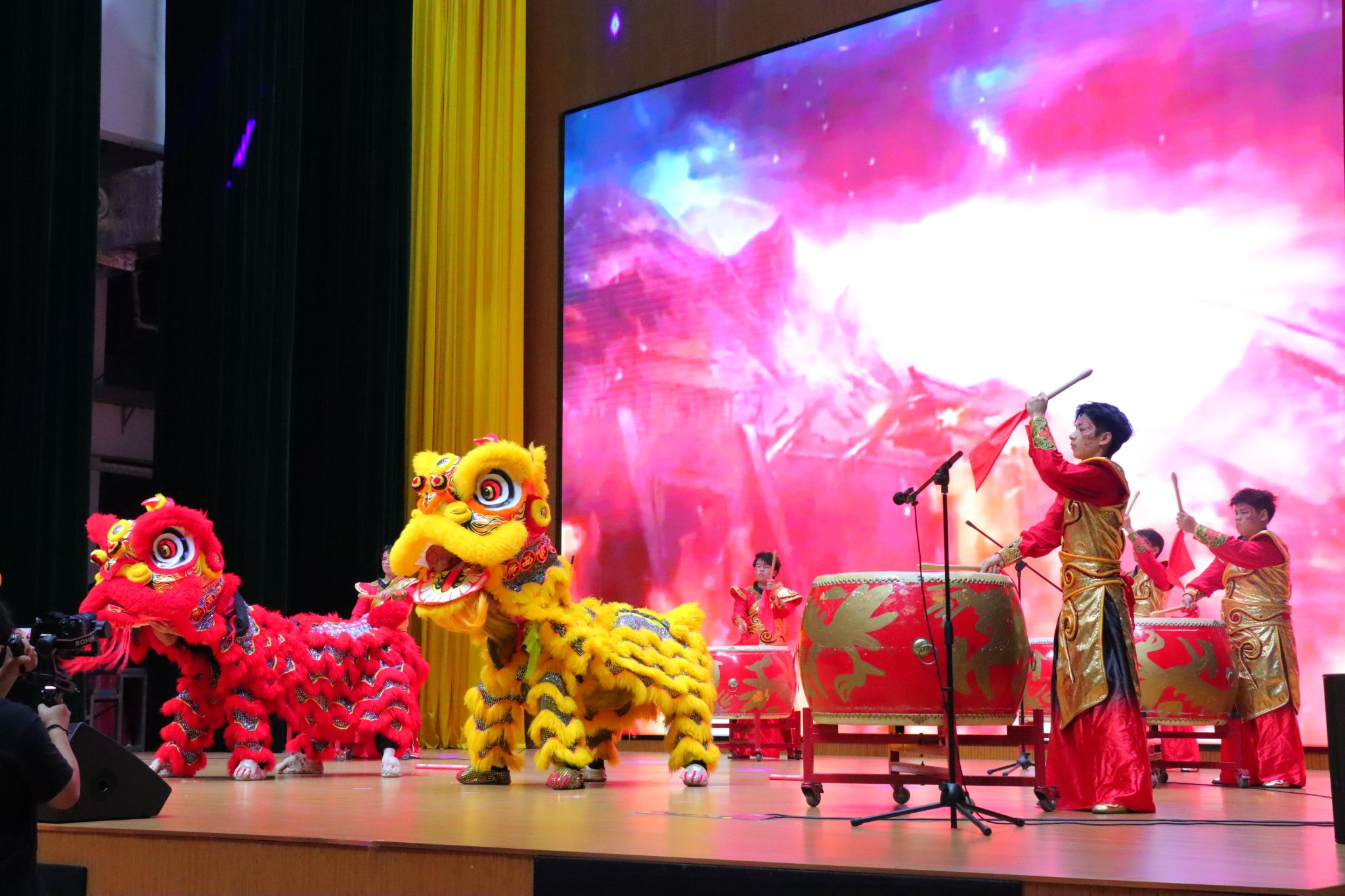 伴随着璀璨的灯光、喜庆的锣鼓,晚会在大鼓和舞狮表演《精忠报国》中拉开序幕。演出共分为“心向璀璨启新程”“青春飞扬展风采”“奋发有为谱华章”三个篇章,涵盖合唱、舞蹈、小品、说唱、影子戏、情景剧等形式多样的节目,台上的演员们用饱满的热情和精彩的表演,感染着在场的观众,现场掌声此起彼伏。