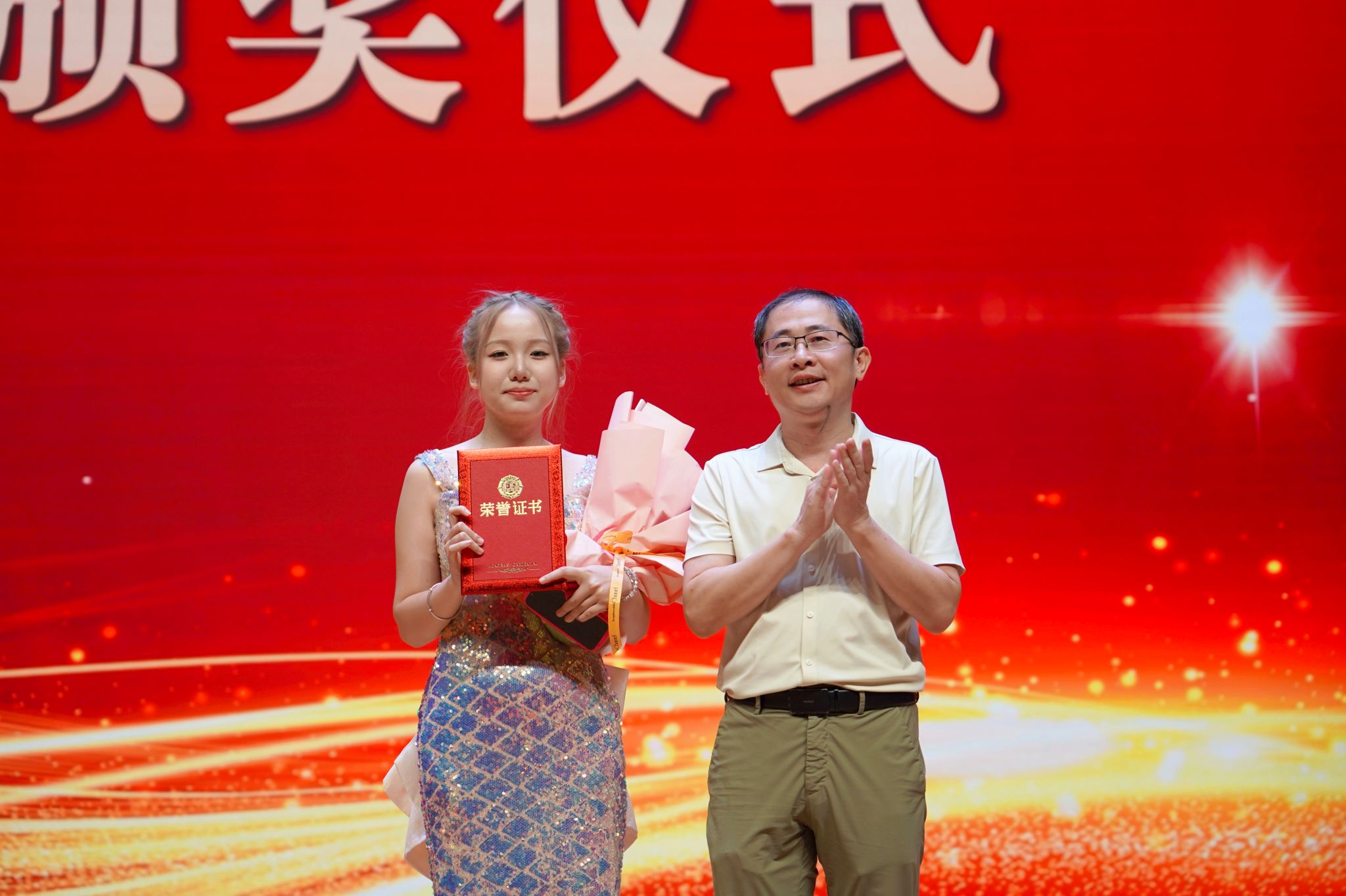 学院党委副书记陈雪松为节目二等奖获得者颁奖
