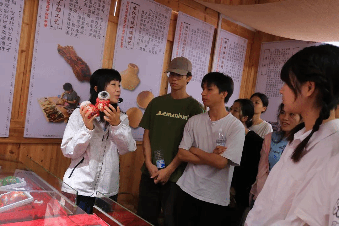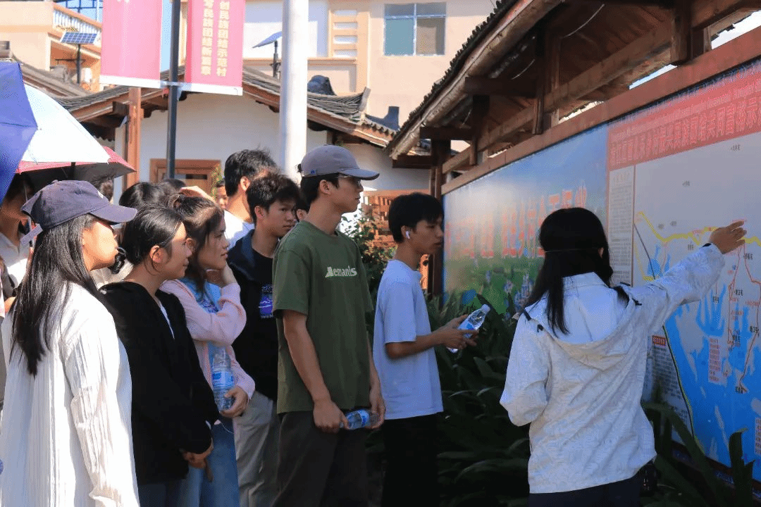 讲解员为师生们讲解凌云县浩坤村的发展历程