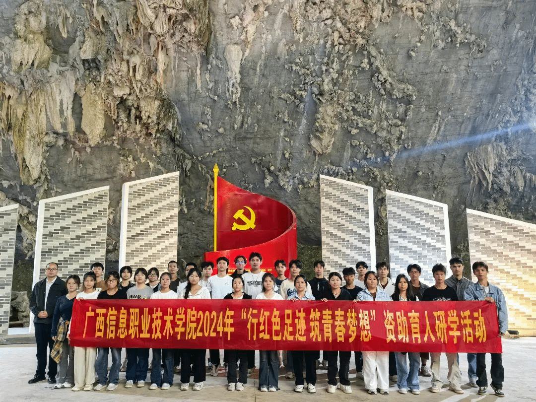 学生工作部(学生资助中心) 陈绍龙报道 为进一步激发学生坚定理想信念,拓宽视野,提升素养,我校按照自治区教育厅关于开展资助育人研学活动的通知要求,于10月25日至27日,组织30名获奖助学生,在数字艺术与传媒学院罗先权、北斗与通信学院陈绍龙老师的带领下,赴百色革命老区开展“行红色足迹 筑青春梦想”资助育人研学活动。