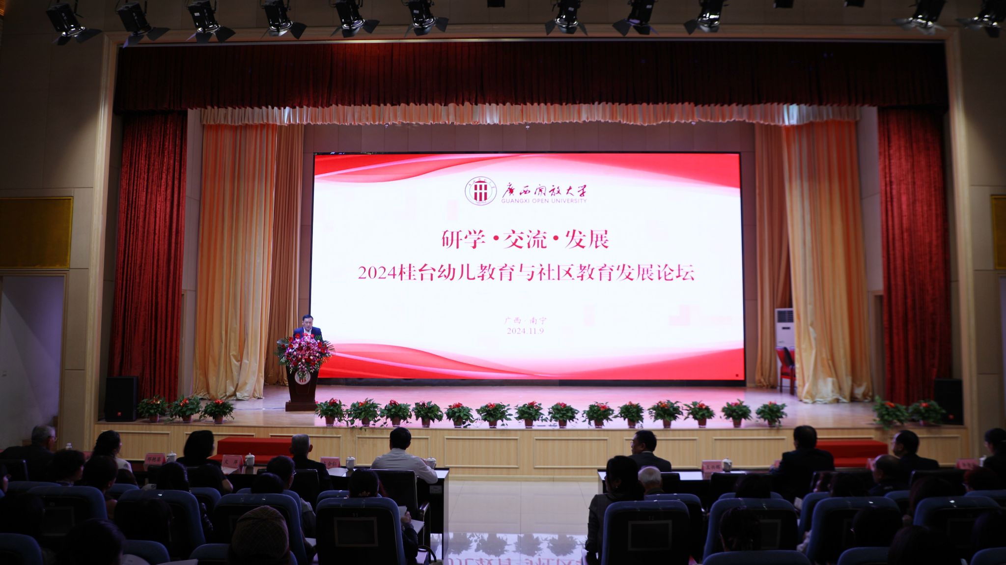 党委宣传部 黎桃桃报道 2024年11月9日,以“研学·交流·发展”为主题的2024桂台幼儿教育与社区教育发展论坛在广西开放大学正式拉开帷幕。广西台办副主任林承格,广西开放大学校长王兴辉、副校长黄鹄等学校领导,台湾教育文化交流策进会理事长黄仁莹,广西幼儿师范高等专科学校校长文萍,广西民族大学教育科学学院教授韦莉娜,南宁师范大学教育科学学院教授李香玲等领导、专家出席论坛。广西台办副主任林承格致辞,广西开放大学校长王兴辉主持论坛。