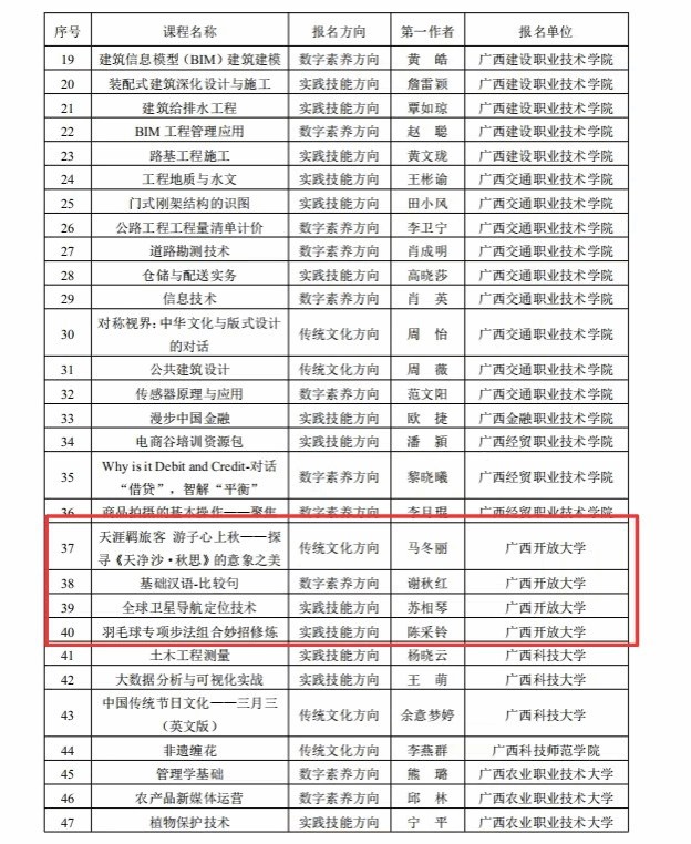 教务处 廖淑珍报道 近日,数字化学习技术集成与应用教育部工程研究中心公布了“首届高等院校数字化国际课程征集活动优质国际课程名单”,我校马冬丽老师的《天涯羁旅客 游子心上秋——探寻《天净沙·秋思》的意象之美》、苏相琴老师的《全球卫星导航定位技术》、谢秋红老师的《基础汉语-比较句》、陈采铃老师的《羽毛球专项步法组合妙招修炼》四门课程获选首届高等院校优质数字化国际课程。