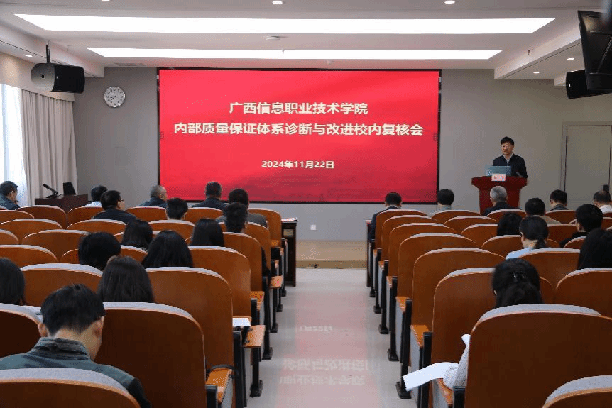 广西信息职业技术学院院级副职领导,人事处、教务处、学生工作部负责人,其他部门(学院)分管诊改工作领导和联络员,质量管理中心(含诊改专职)全体人员,专业负责人、课程负责人参加会议。