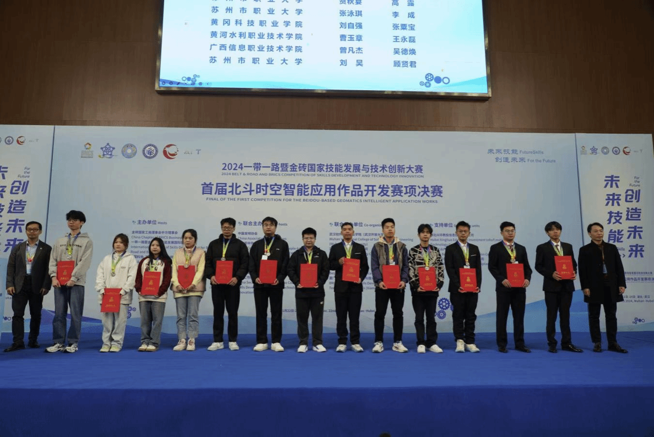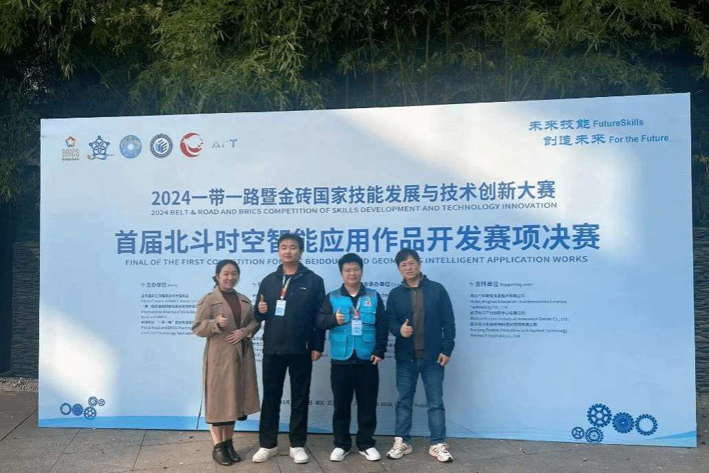 北斗与通信学院(智能制造学院) 黄贺报道 11月22日至24日,2024一带一路暨金砖国家技能发展与技术创新大赛首届北斗时空智能应用作品开发赛项(高职组)全国总决赛在武汉软件工程职业技术学院举办。经过激烈角逐,我校北斗与通信学院(智能制造学院)曾凡杰、吴德焕两位同学组成的团队,从全国73支队伍中脱颖而出,荣获全国二等奖。黄贺、王丹媛两位老师获“优秀指导教师”称号,我校荣获“优秀组织奖”。