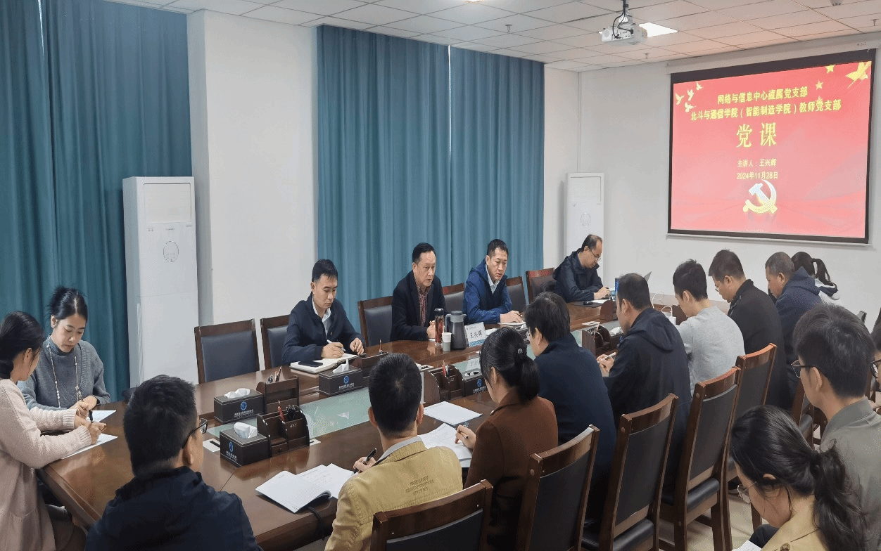 网络与信息中心(图书馆、教育技术中心) 韦武超报道 11月28日,学校校长王兴辉在五象校区314会议室以《从百年变局中看中国共产党的世界领导力》为题,为网络与信息中心直属党支部、北斗与通信学院(智能制造学院)教师党支部全体党员讲授了一堂意义深刻、内涵丰富的党课。