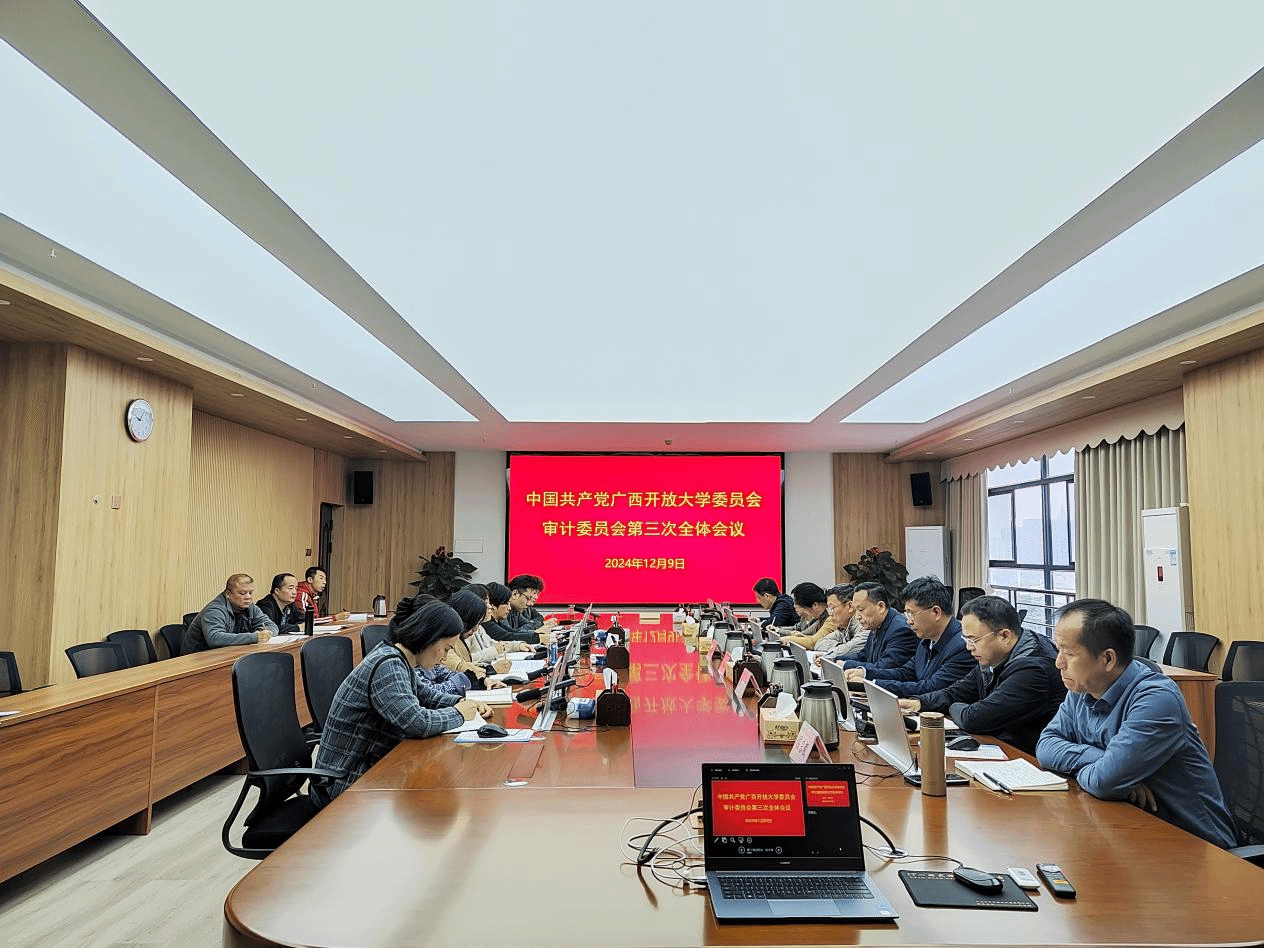 审计委员会办公室 农盛霖 报道 12月9日上午,中共广西开放大学委员会审计委员会第三次全体会议在我校东宝校区远教大厦11楼1101会议室召开。学校领导王兴辉、龙雪津、翁洁、李敏智、刘绍英、辛立章、侯宗毅等,审计委员会各成员部门主要负责人参加会议,社区教育学院、基建处、继续教育学院部门负责人列席会议。