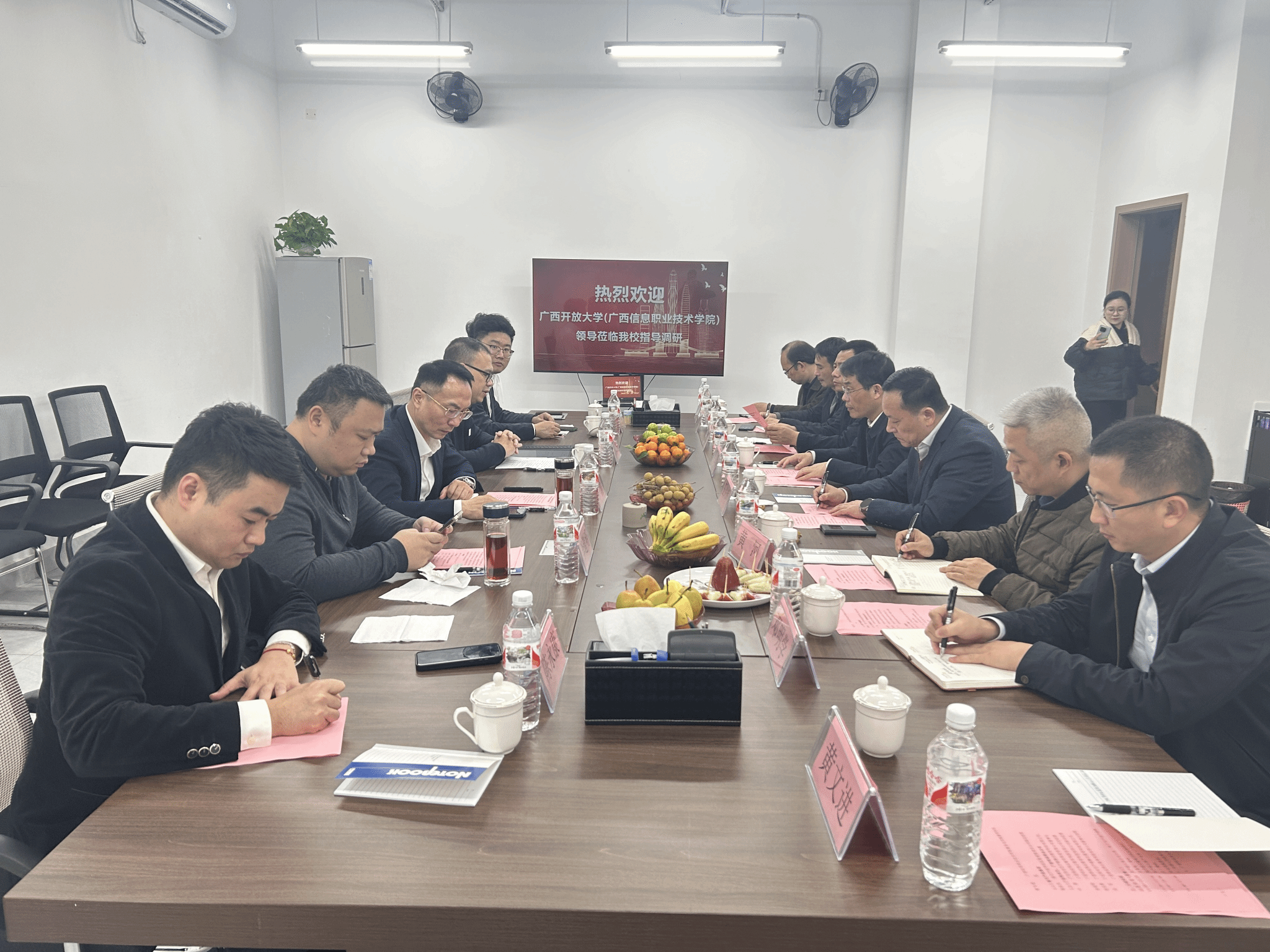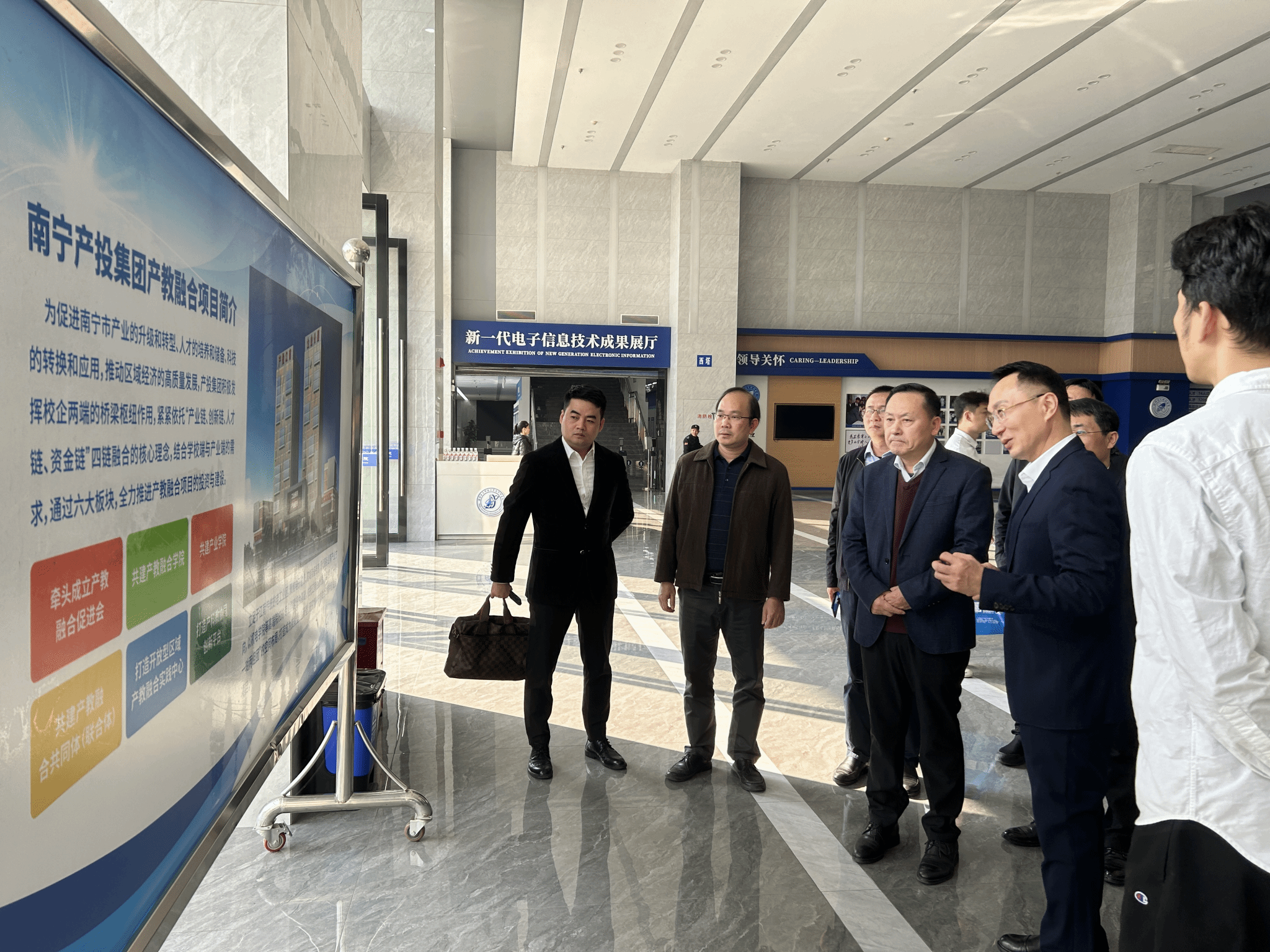 教务处(招生就业处)黄文进报道 为进一步探索产学研合作新模式,推动学校与企业在人才培养、科研项目、成果转化等方面的深度合作,2024年12月31日,学校校长王兴辉、副校长辛立章带领相关二级学院相关人员前往南宁产投集团开展产教融合调研活动。