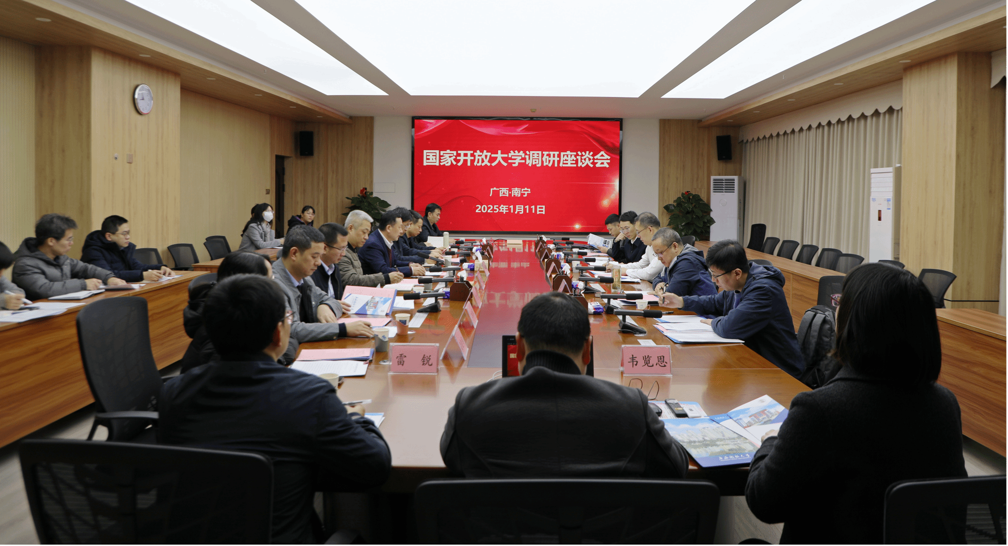 调研会上,王兴辉就近年来我校开放教育事业发展情况、办学体系建设进展等有关情况进行了介绍。他表示,在国开总部指导和支持下,广西分部积极落实国开总部“开放教育创优提质”和“四领一促”发展思路,顺利完成了国开总部和教育部高等教育教学评估中心的办学评估检查,及时制定了广西分部办学评估整改方案,开放教育办学水平和人才培养质量明显提升。他指出,学校“一体两翼”融合发展战略实施以来,通过校地共建县级开放大学、直属办学模式和创新开展“大招生、大教学、大考试”等措施,有效重构了具有广西特色的办学体系及运行机制,学校各项事业稳步向前,开放教育、继续教育、高职教育、社区教育、老年教育和社会培训等均取得了明显成效。