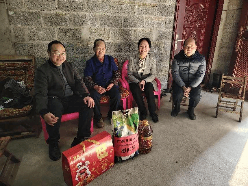 党委组织部 李婷报道 新春佳节来临之际,1月20日,学校党委副书记龙雪津、副校长黄鹄,带队赴大新县定点帮扶村开展调研和春节走访慰问活动,慰问驻村第一书记和定点帮扶村的脱贫户、监测户。