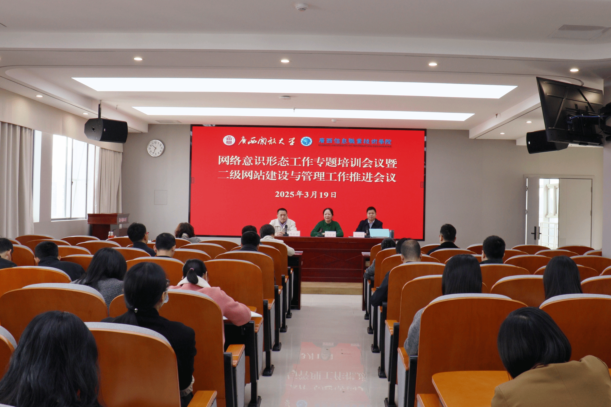 会上,党委宣传部部长胡峥嵘通报学校关于做好二级网站建设与管理的通知,就做好网络意识形态工作等作专题培训。网络与信息中心主任韦劼群就做好二级网站数据规范存档、建设新的二级网站和网站日常维护等作技术培训。
