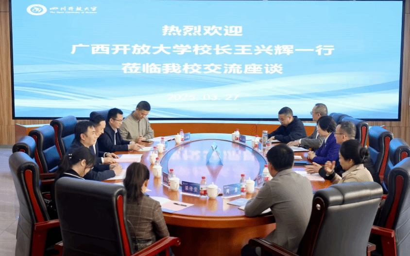 在四川开放大学调研期间,四川开放大学党委书记王玲、副校长汪涛和教务处、终身教育处、发展规划与对外合作处、四川华新现代职业学院等有关部门负责同志参加了座谈会,分享了四川开放大学在开大与高职一体化管理、开放大学体系建设、终身教育、高职校企合作等方面的先进经验和特色做法。王兴辉向四川开放大学重点介绍了我校“一体两翼”改革、办学体系建设、开放教育“大招生、大教学、大考试”等方面的做法与成效。