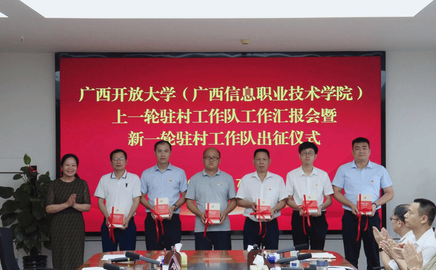根据自治区党委统一部署,我校本次选派了6名驻村干部,分别是大新县恩城乡护国村第一书记李培福、如龙村第一书记李有光,堪圩乡拔浪村第一书记郭昱轩、谨汤村第一书记陆征,宝圩乡尚艺村第一书记陆钰京,堪圩乡谨汤村工作队员梁剑乔,他们将肩负学校重托,奔赴乡村振兴一线,为乡村振兴贡献智慧与力量。
