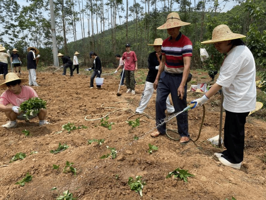 当天下午,带队老师耐心讲解了空心菜、小番茄、西瓜以及红薯的生长习性、种植技巧以及日常养护注意事项,带领同学们一起翻地、除草、播种、施肥、浇灌……不仅提升了同学们的动手实践能力,还引导同学们体悟“谁知盘中餐,粒粒皆辛苦”的深刻内涵,培养同学们珍惜粮食、尊重劳动的价值观念。同学们在劳动中感受生命的神奇,进一步增强了劳动责任感,感受“劳动创造美好”的意义。
