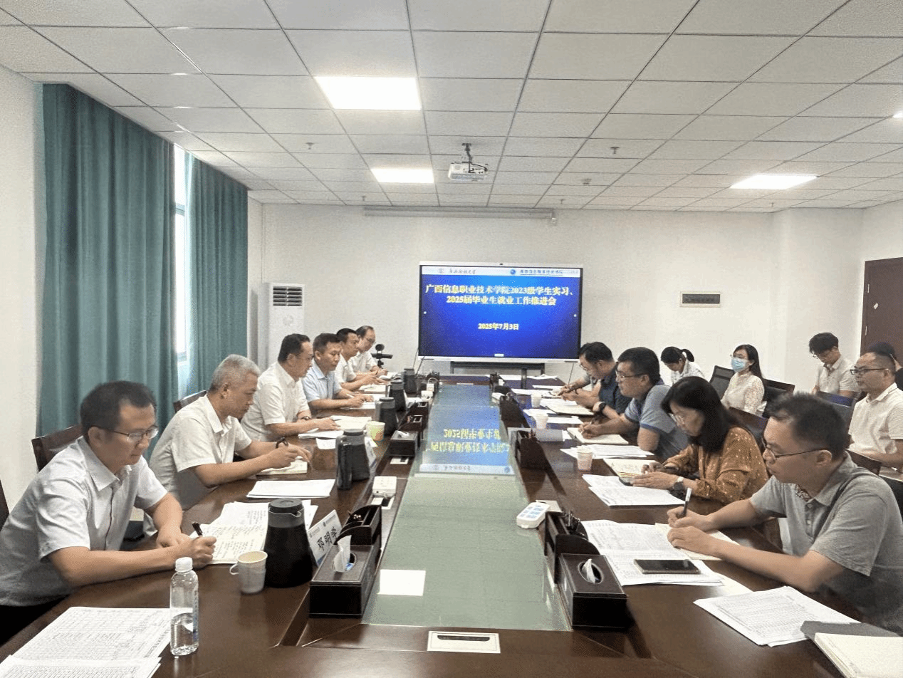 教务处(招生就业处) 黄永旺 报道 7月3日下午,学校召开2023级学生实习、2025届毕业生就业工作推进会。校长王兴辉、副校长黄远鸣,广西信息职业技术学院副院长黄河、李国助、邓明学,各二级学院负责人、实习就业工作分管负责人、就业干事、部分就业指导教师,教务处(招生就业处)负责人及相关工作人员参加会议。会议由邓明学主持。