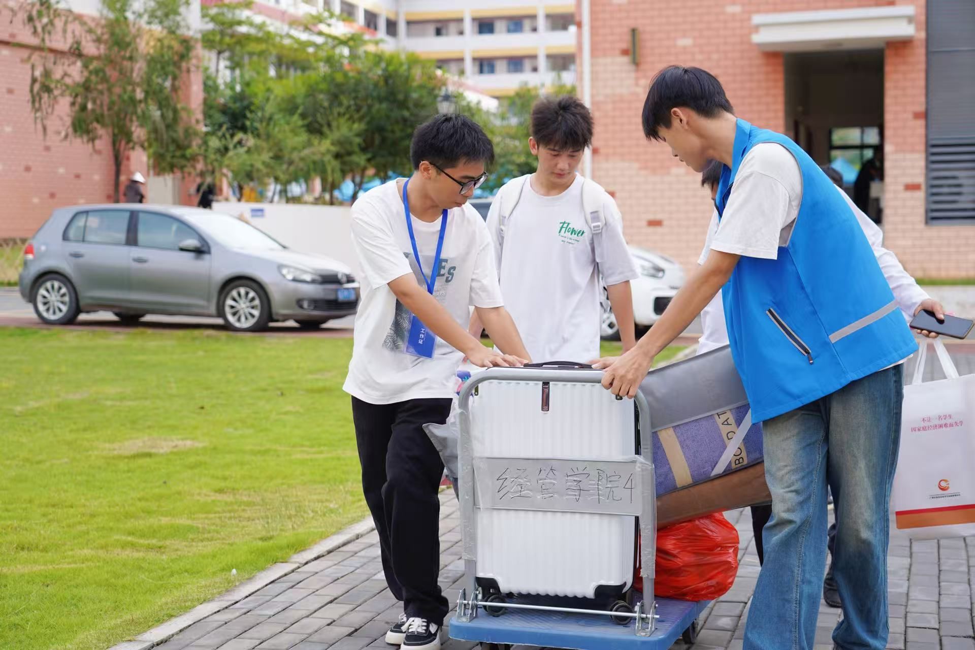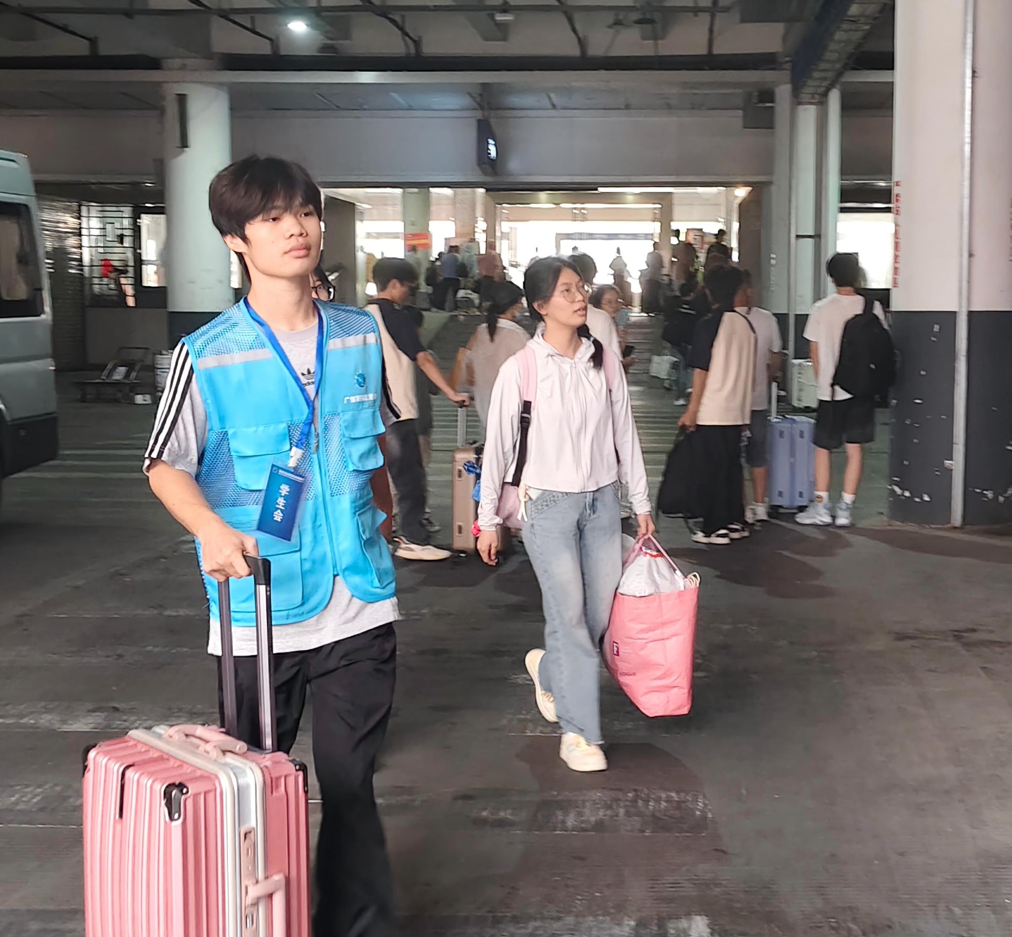 师生们和迎新志愿者的友好问候与热情帮助