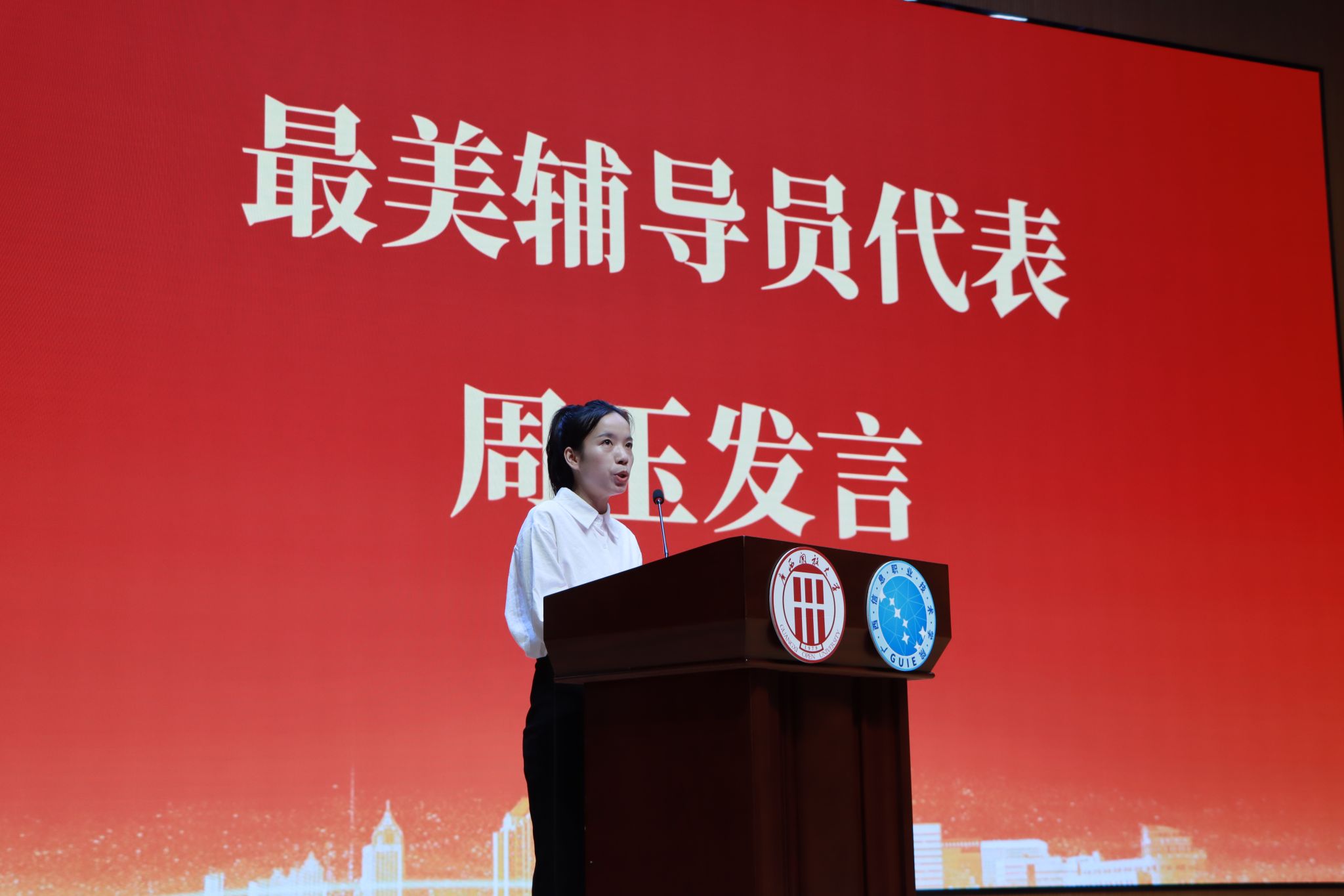大会对广西开放大学体系中获得教学名师、学生最喜爱的老师、师德标兵、优秀思想政治工作者、最美辅导员进行了表彰,获奖教师们依次分享先进事迹与感悟体会,以实际行动践行“学高为师、身正为范”,生动诠释了“经师”与“人师”相统一的崇高典范。