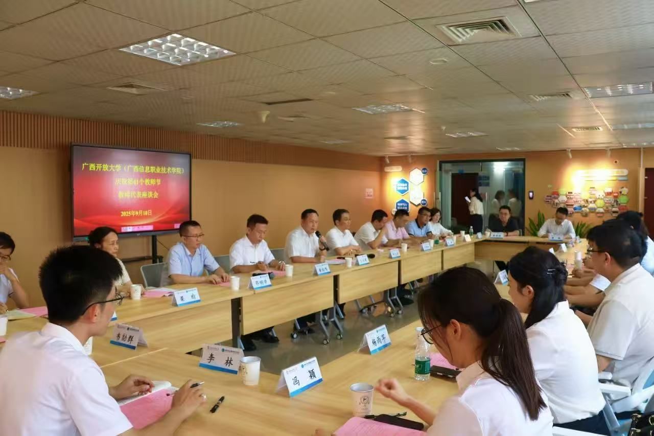 党委教师工作部、人事处 吴聃 报道 9月10日上午,学校以“以教育家精神铸魂强师 谱写教育强国建设华章”为主题,在五象校区“一站式”学生社区思政厅召开教师代表座谈会,学校校长王兴辉,副校长辛立章,副校长黄远鸣等学校领导出席会议,学校相关主要负责人以及教师代表参加座谈会。会议由副校长辛立章主持。