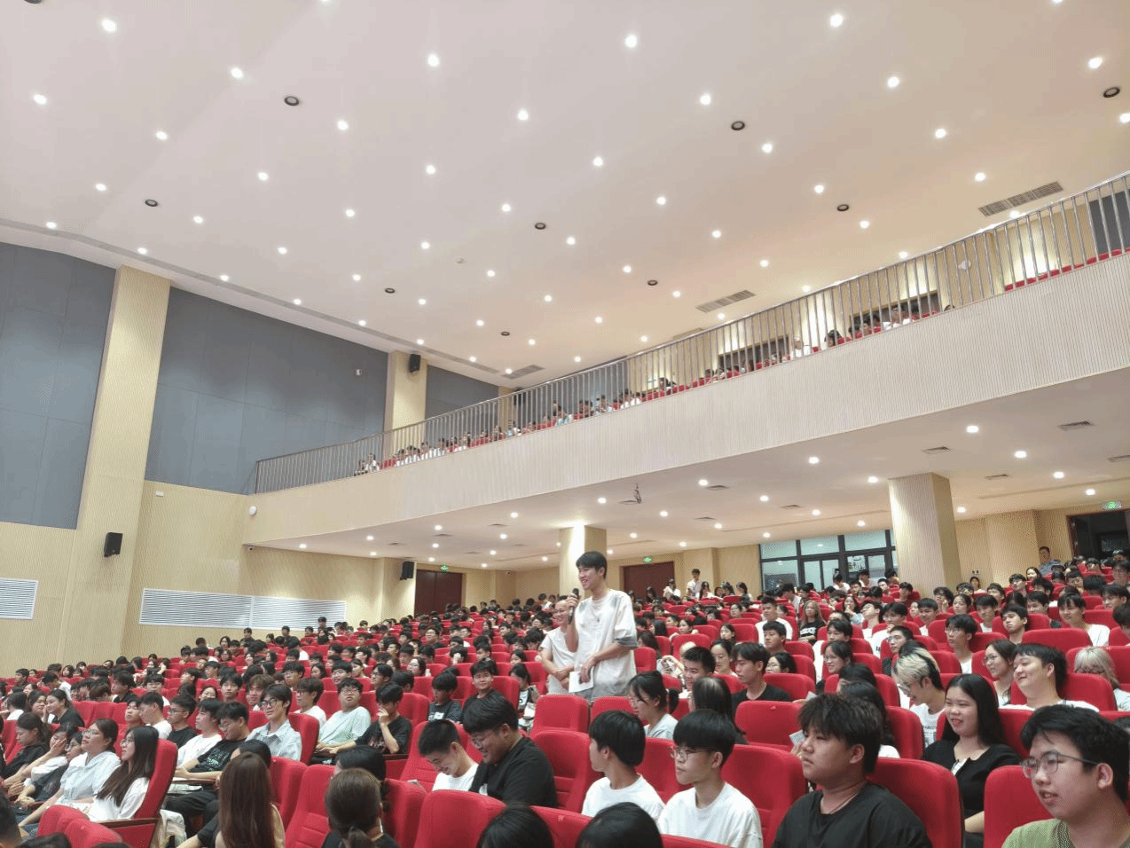 本次专题讲座设置了主会场和分会场,采取“线下参与+线上直播”相结合的方式进行,主会场设于学生活动中心一楼报告厅,各二级学院设立分会场,组织学生集中观看直播。全校2025级新生及辅导员共2600余人参与讲座。