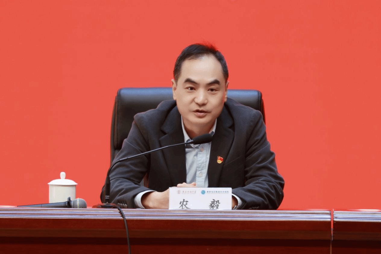 党委宣传部 黄杰瑶 报道 11月26日,学习贯彻党的二十届四中全会精神宣讲报告会在五象校区大学生活动中心举行。自治区纪委委员、自治区教育厅党组成员、自治区纪委监委驻自治区教育厅纪检监察组组长农毅作宣讲报告。学校党委副书记、校长王兴辉主持报告会。