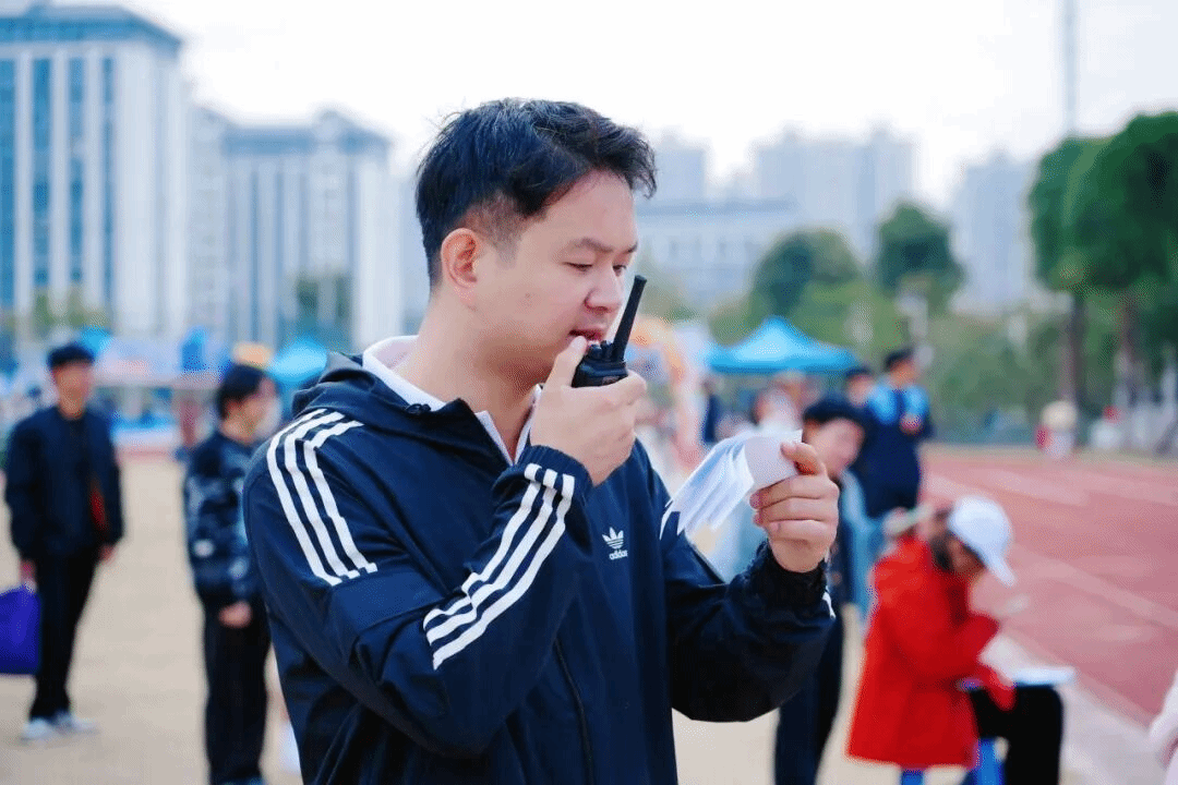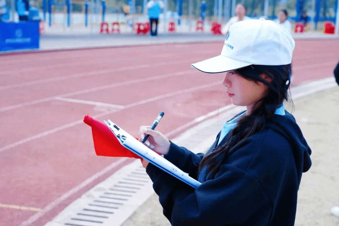 运动会的精彩,不仅属于在赛场上拼搏的运动员,更属于每一位默默奉献的幕后英雄——“请男子组跳远运动员到检录处集合!”这样的呼唤在检录处不绝于耳,他们是运动员踏上赛场前见到的第一人,也是赛事顺畅运行的“无名英雄”。“下面播报获得女子组4*100米接力赛的成绩”,广播站里,甜美的播报声将同学们一篇篇鼓舞人心的加油稿,将全场的热烈气氛推向一个又一个高潮。运动场上,从精准的计时到毫厘不差的测量,从严格的规则执行到公正的现场判决,他们专注的目光是赛场上公平的尺度。志愿者们,奔波于操场的各个角落:维护赛场秩序、协助搬运器械、及时清理场地。两天的汗水挥洒,两天的激情呐喊,两天的团结拼搏,在初冬暖阳的见证下,运动场上那些奔跑的身影、那些温暖的瞬间、那些胜利的欢呼,都将成为学校五象校区运动场上难忘的青春记忆。