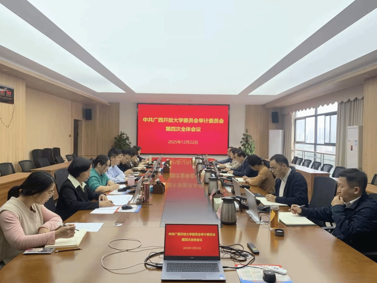 审计处 农盛霖 报道 12月22日下午,中共广西开放大学委员会审计委员会第四次全体会议在东宝校区远教大厦召开。学校党委审计委员会主任、校长王兴辉出席并主持会议,全体在家校领导出席会议,审计委员会各成员单位主要负责人参加会议。