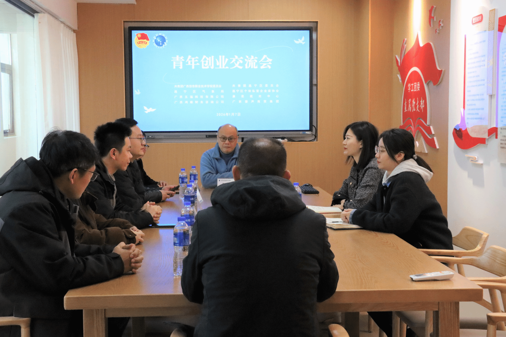 学校团委 温舒琳 报道 为深化校地产学研协同对接,搭建青年学生实习就业和创业实践平台,1月9日,广信团委与共青团邕宁区委员会,在学院“一站式”社区党建活动室举行青年创业工作交流座谈会。邕宁区团委、邕宁区气象局、邕宁区个体私营企业家协会以及我校团委相关负责同志参加座谈。