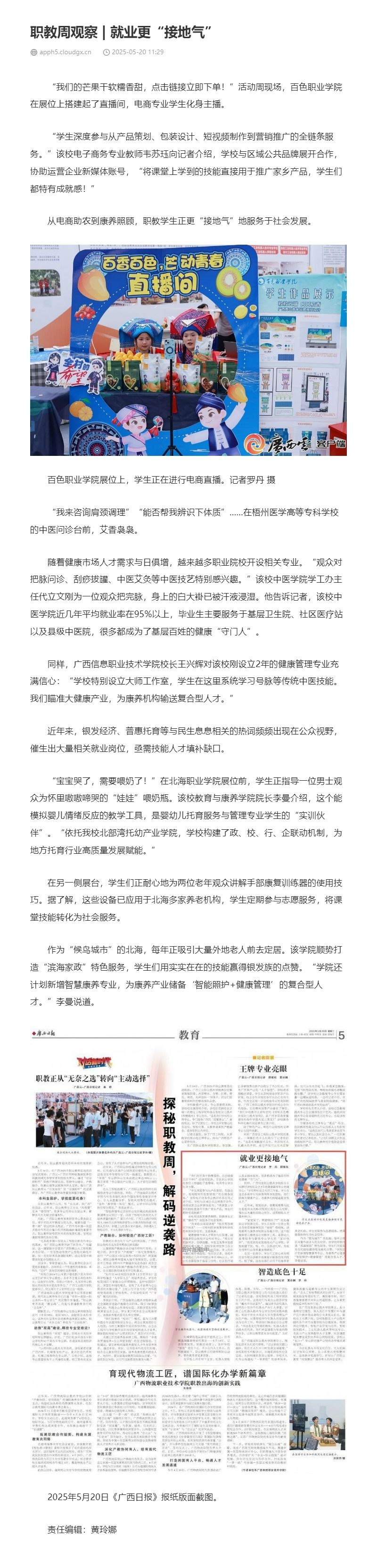 5月20日,广西云-广西日报以“北斗系统点亮智慧未来,产教融合培育能工巧匠”为题,报道了广西信息职业技术学院校长王兴辉对该校刚设立2年的健康管理专业接受广西日报记者采访的相关情况。现将报道转载如下。