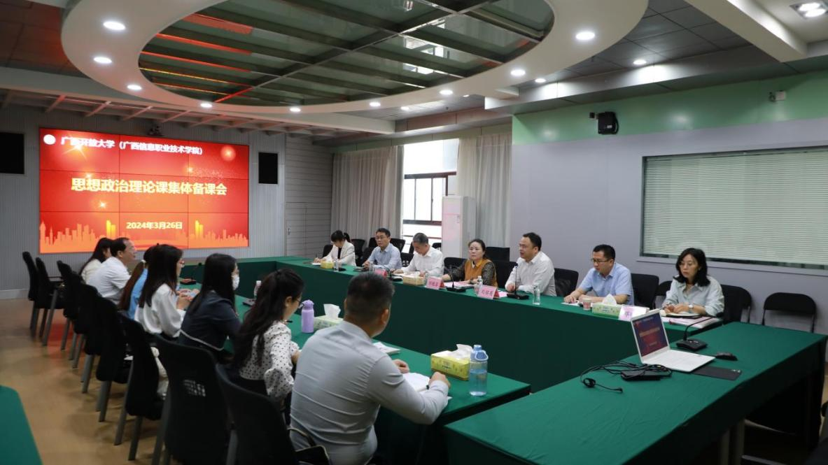 马克思主义学院 梁小娟报道 为提高思政课教师的教学能力,提升思政课教学效果和质量,切实做好2024春季学期思想政治理论课教学工作,3月26日上午,马克思主义学院在东宝校区远教大厦801会议室开展本学期第2次集体备课会暨教学改革与创新研讨会。广西开放大学副校长刘绍英、辛立章,马克思主义学院名誉院长邓艳葵教授,广西水利电力职业技术学院江颉教授,广西信息职业技术学院副院长邓明学出席会议。文理学院、马克思主义学院全体思政课教师参加了本次集体备课。会议由马克思主义学院名誉院长邓艳葵教授主持。