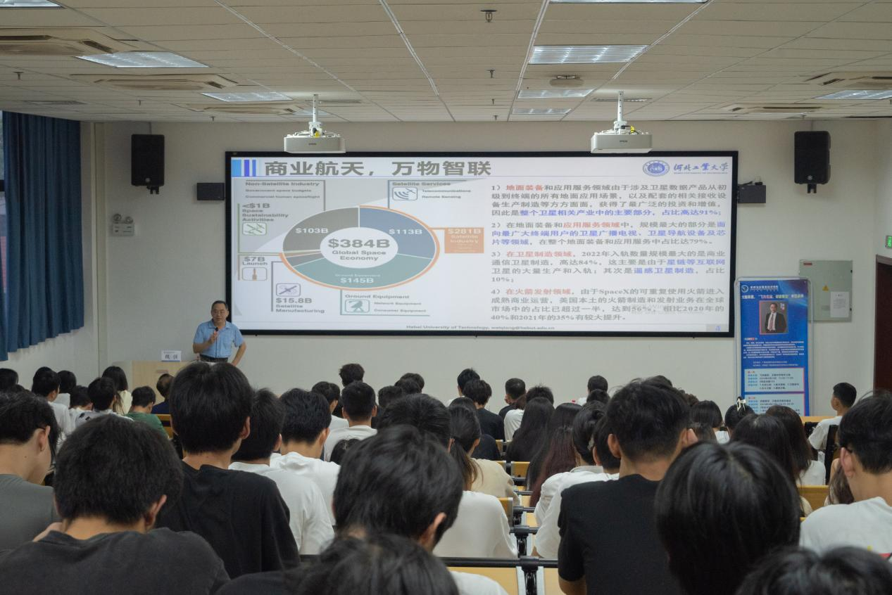 讲座邀请了河北工业大学魏强教授,他首先介绍了太空认知、航天探索以及我国在航天领域的发展,重点讲解了北斗卫星在个人位置服务、气象应用、交通运输管理和应急救援等领域的应用。随后,他结合学院专业特色,深入介绍了河北工业大学“元光号”卫星成功发射所涉及的重要技术。他希望同学们在科技自立自强上大胆探索、勇于实践,积极应对各类挑战和机遇。最后,魏强教授与北斗学院教师们就卫星技术的最新研究成果、发展趋势和面临的挑战进行了深入交流,重点探讨了学院专业建设方面的内容。