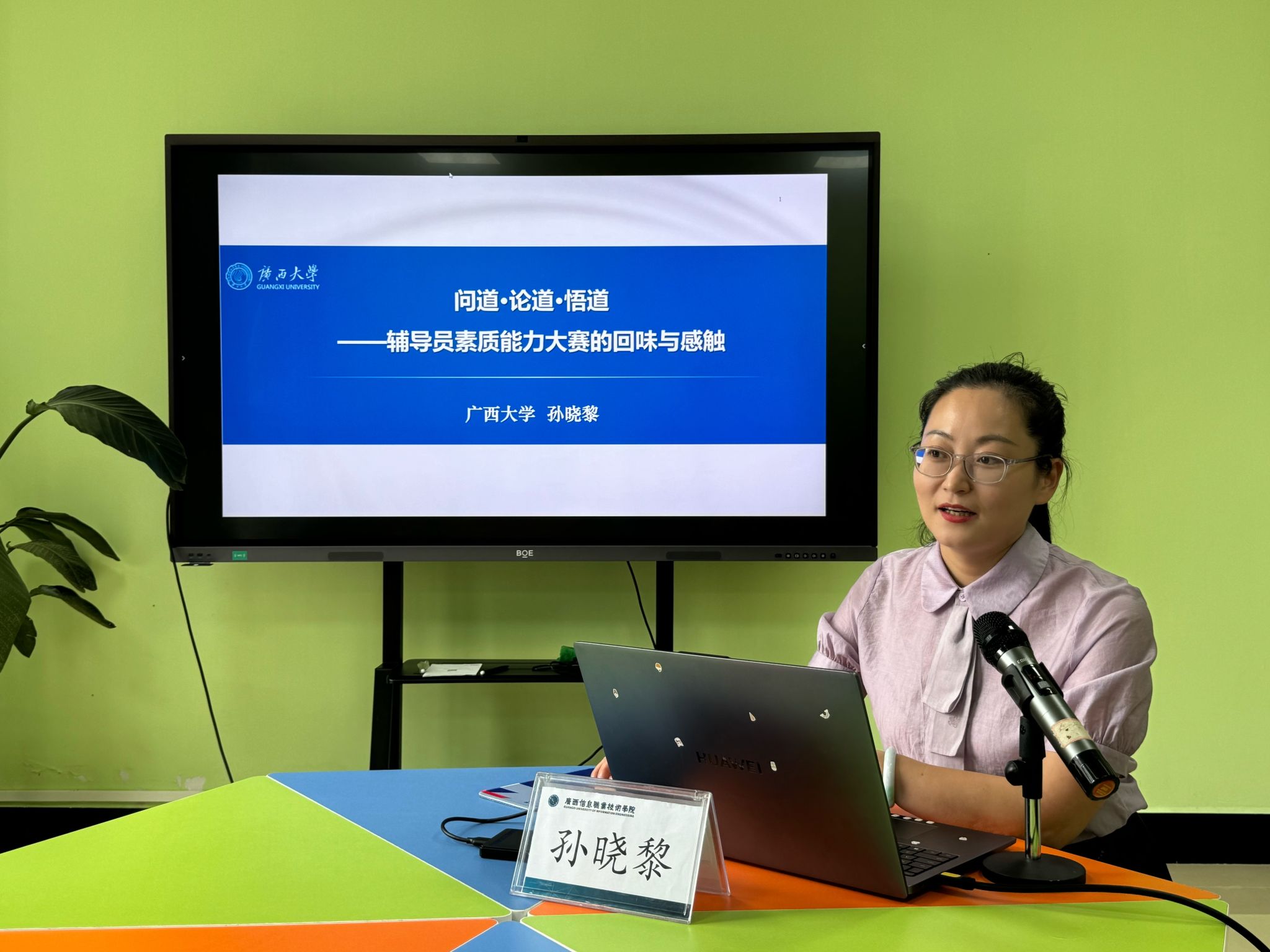 第十三届广西高校辅导员素质能力大赛特等奖获得者、广西大学数学与信息科学学院团委书记孙晓黎作分享交流