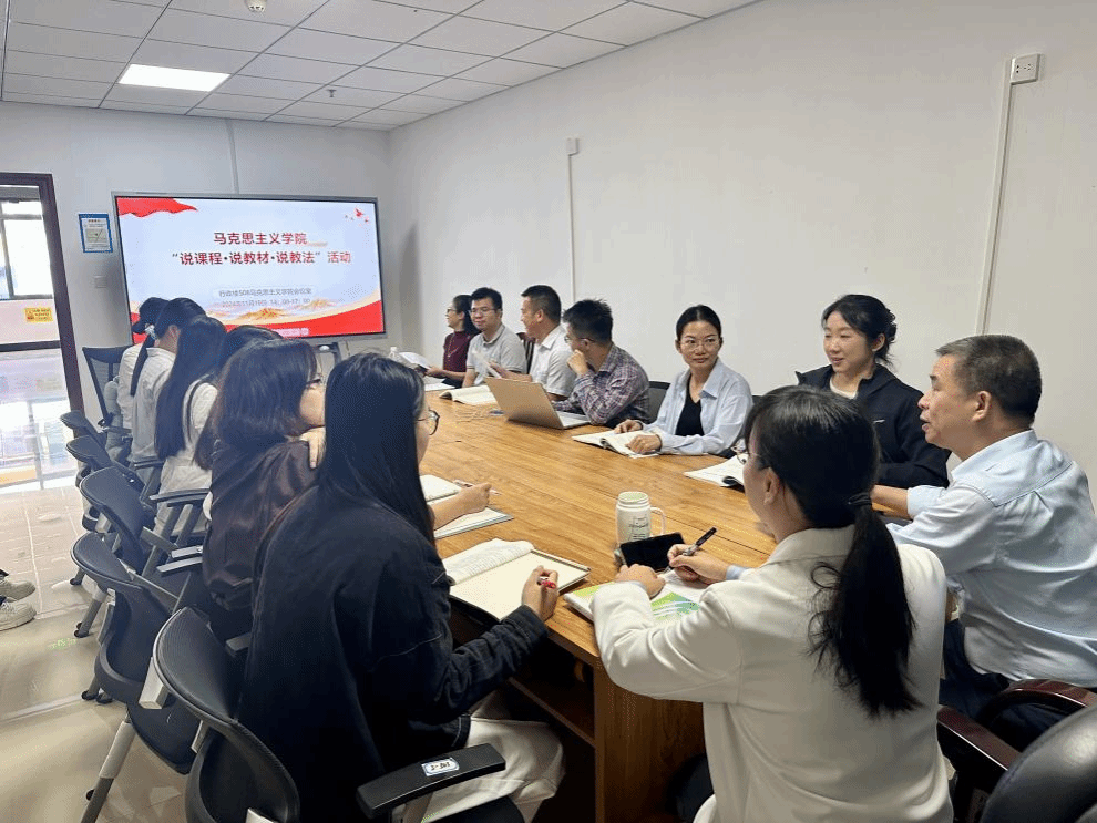 马克思主义学院 文红敏报道 为落实立德树人根本任务,进一步提升思政课教学质量,马克思主义学院于11月19日举办了“说课程、说教法、说教材”专题活动,活动旨在深化课程内涵,共谋教学发展,通过教师之间的交流与学习,提高教育教学质量,充分发挥思政课立德树人的关键课程作用。学院全体教职工参加了本次活动。