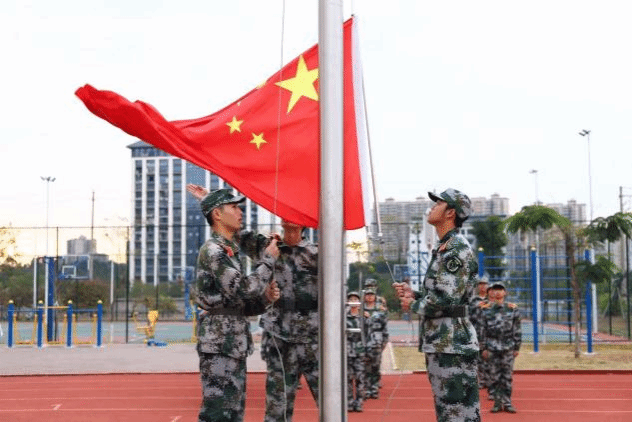 清晨,金光穿透云层,洒下第一道光。国旗护卫队队员们英姿飒爽、精神抖擞,升旗手奋力一挥,国旗迎风展开,在雄浑壮阔的国歌声中,五星红旗徐徐升起。全体师生庄严肃立,心怀敬意,目光紧随国旗缓缓攀升。