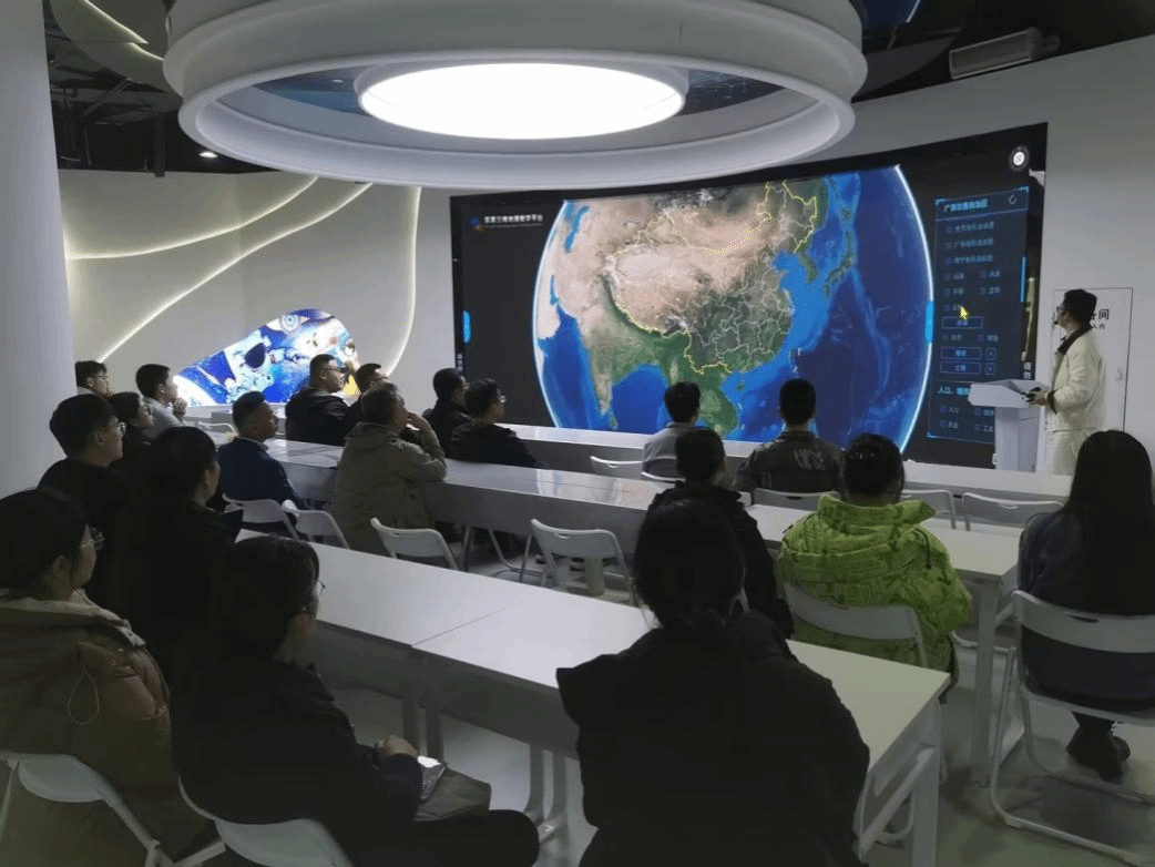 在遥感馆,学院教职工了解了“南宁一号卫星”服务于国土资源管理、农业资源调查、生态环境监测和城市综合应用等领域的有关情况,学习了创新拓展实景三维、城市数字底座、智慧农业等数字南宁建设的技术应用实例。