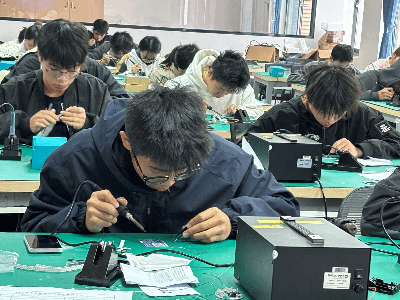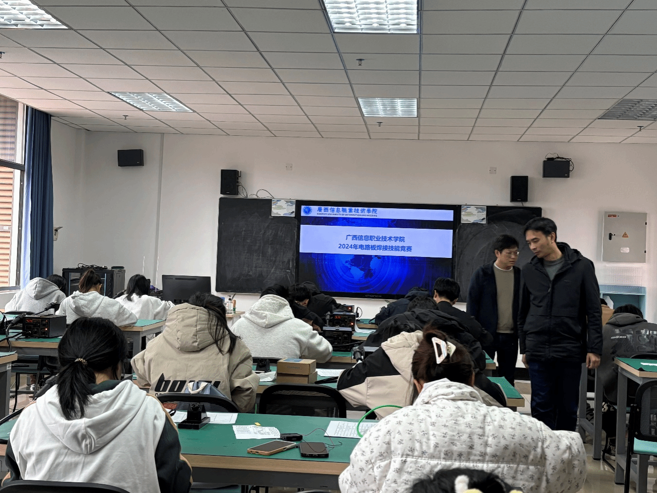 北斗与通信学院(智能制造学院) 梁晓报道 为了提高学生对电子元器件、原理图的识别能力,为今后从事电子相关工作打下坚实的基础,2024年12月30日,由广西信息职业技术学院教务处主办,北斗与通信学院承办,校电子技术社团协办的广西信息职业技术学院2024年电路板焊接技能竞赛在五象校区墨子楼电工电子实训室成功举办。