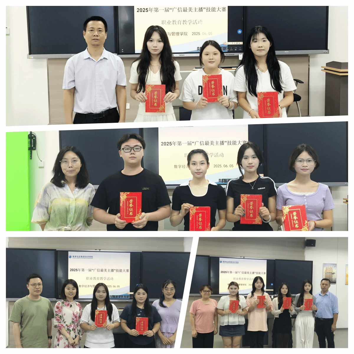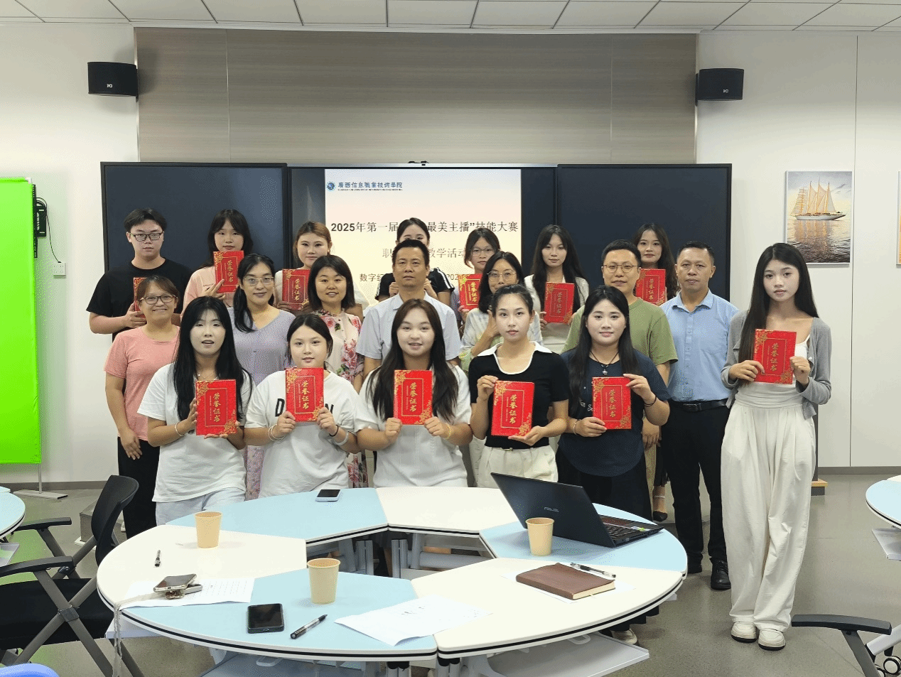 数字经济与管理学院 黎桃桃 报道 为积极响应职业教育活动周号召,6月5日,我校第一届“广信最美主播”技能比赛活动落下帷幕。活动由数字经济与管理学院主办,广西信息职业技术学院副院长李国助参加颁奖仪式。此次比赛不仅为青年学子们搭建了展示才华的舞台,更成为推动学校电商专业发展的重要助力。