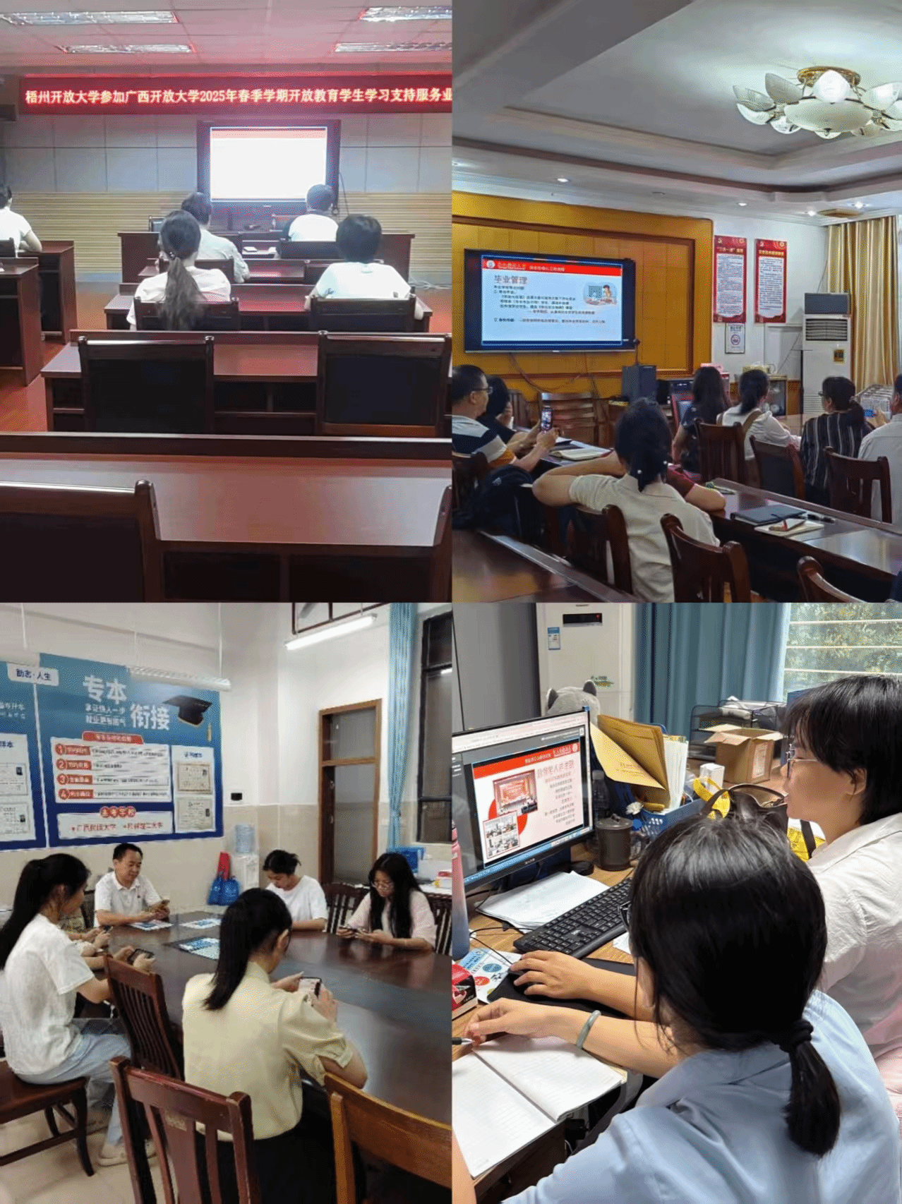 开放教育学院 黎媛姗 报道 6月18日上午,学校召开开放教育2025年春季学期学习支持服务工作培训会,培训采用“线下主会场+线上分会场”模式,覆盖各市县开放大学、学习中心,开放教育学院的班主任、学生工作人员以及学籍工作人员等一线群体参加培训。