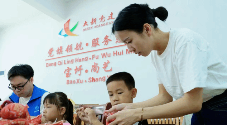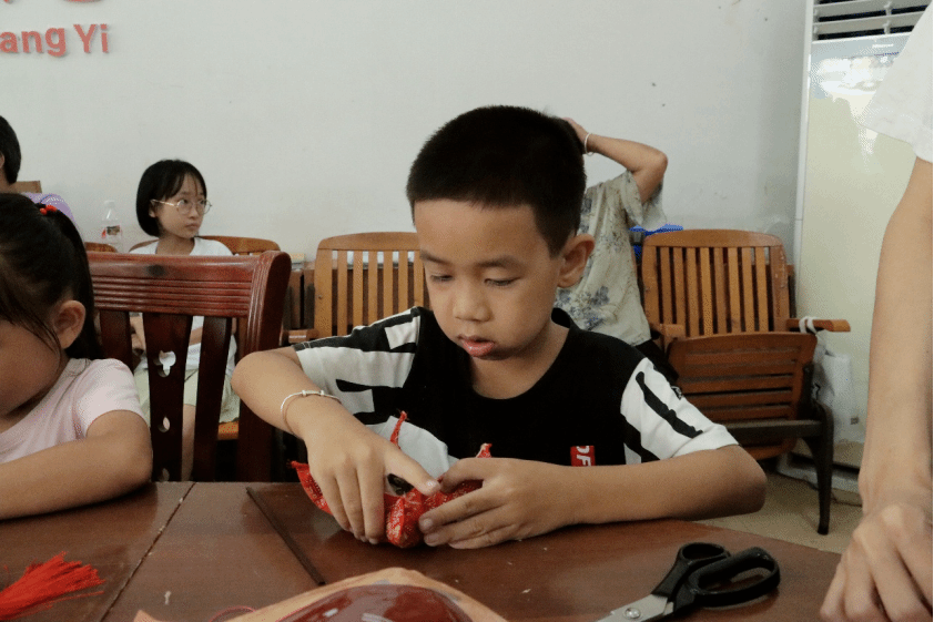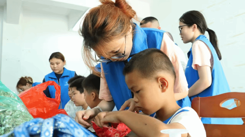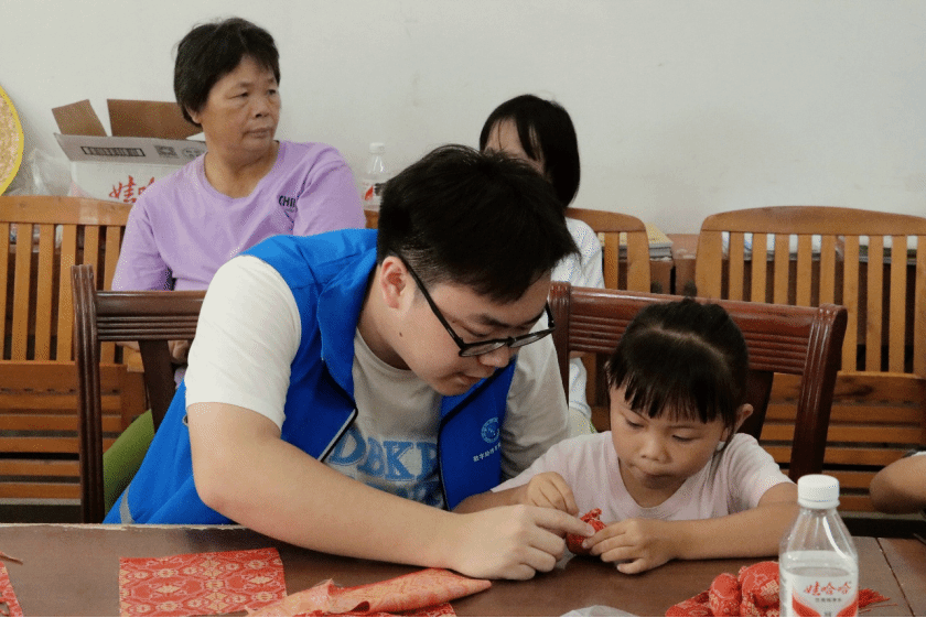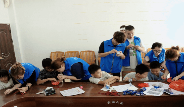 ▲服务团与孩子们开展麽乜制作