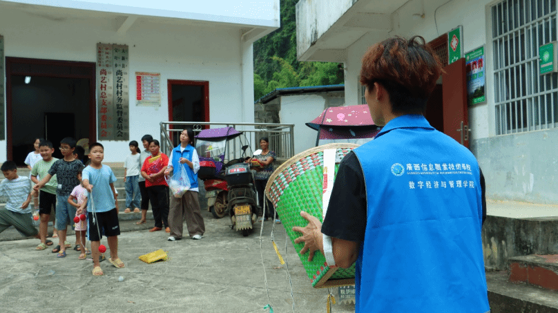 数字经济与管理学院 周 玉 陈颖聪 报道 7月8日,数字经济与管理学院分团委暑期三下乡“青春聚力边疆行,携手共绘同心圆”服务团,以红色文化为根基、非遗传承为脉络、民族体育为纽带,在广西边境县大新县宝圩乡尚艺村精心策划了一场浸润人心的游园实践活动。